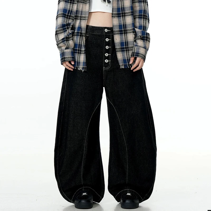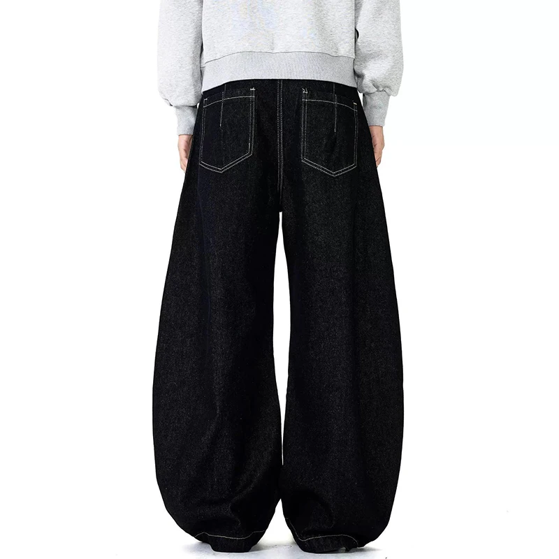 Fashion Male Jeans American Denim Curved Knife Pants Loose Straight Leg Design Casual Wide Leg Trousers Summer 9W1472
