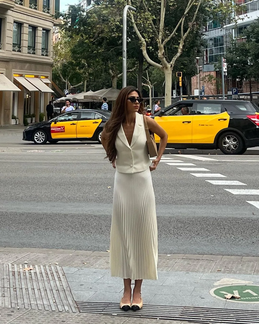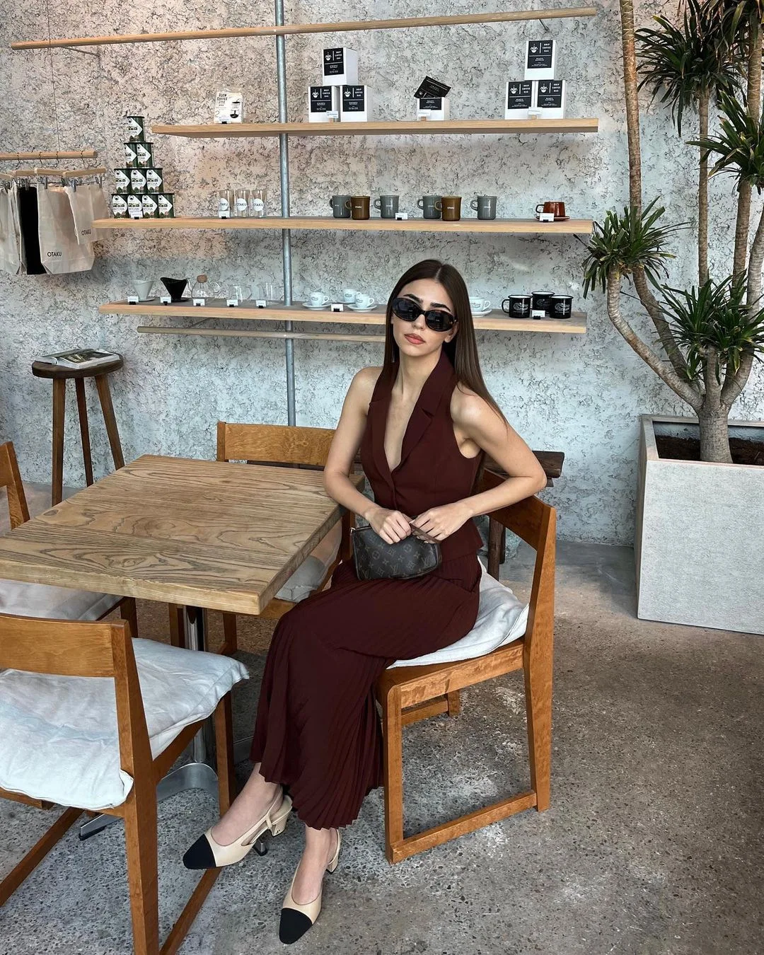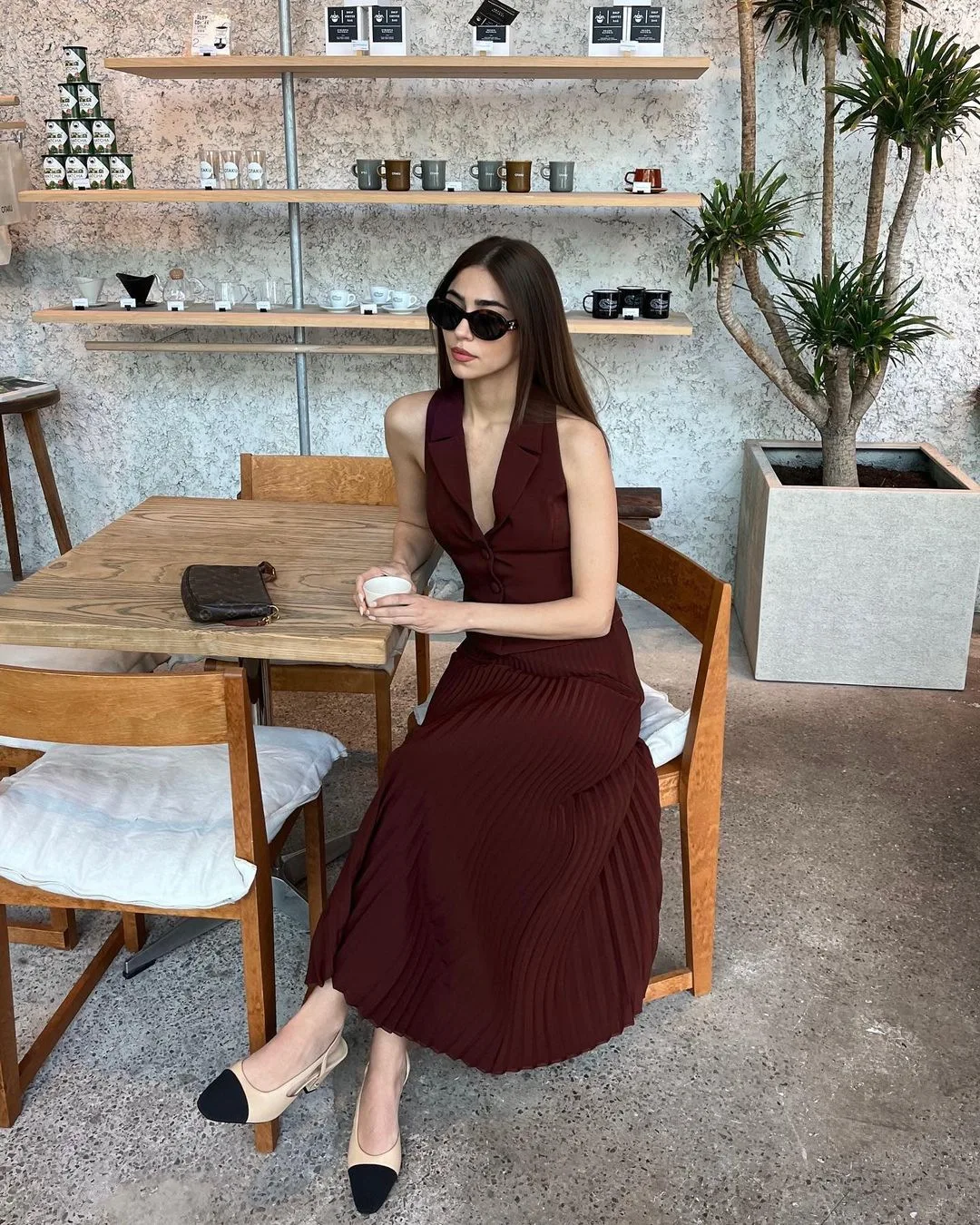 Fashion Skirt Two Piece Sets Women Notched Collar Sleeveless Crop Tops And Midi Skirt Femme Elegant Pleated Skirt Sets