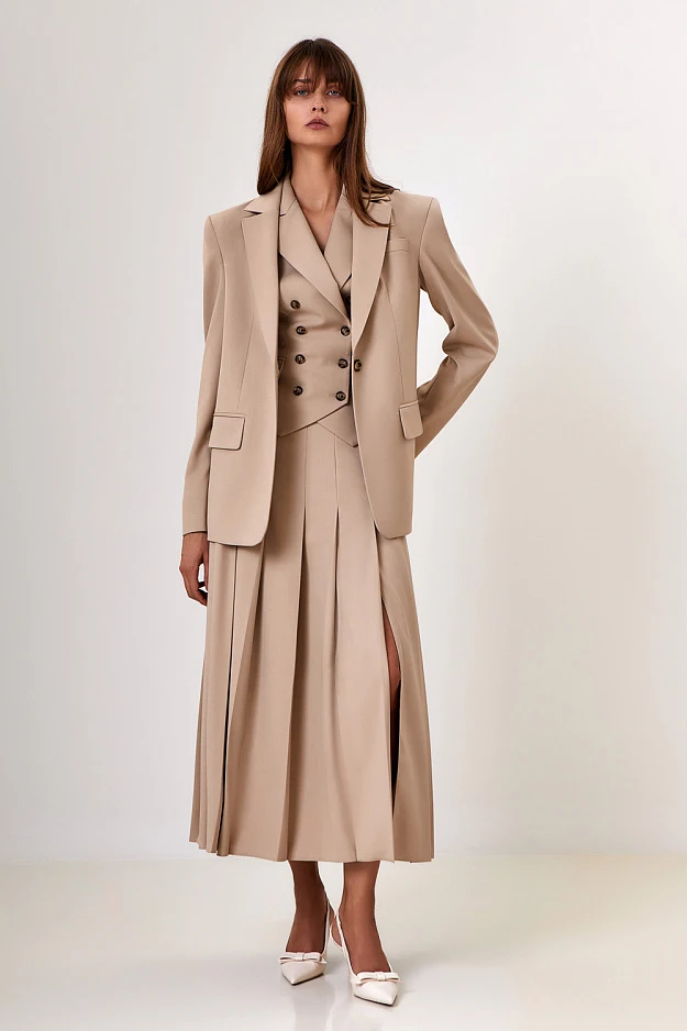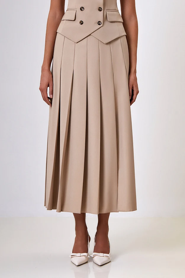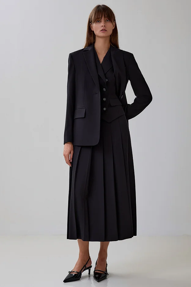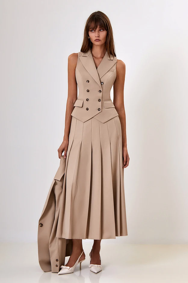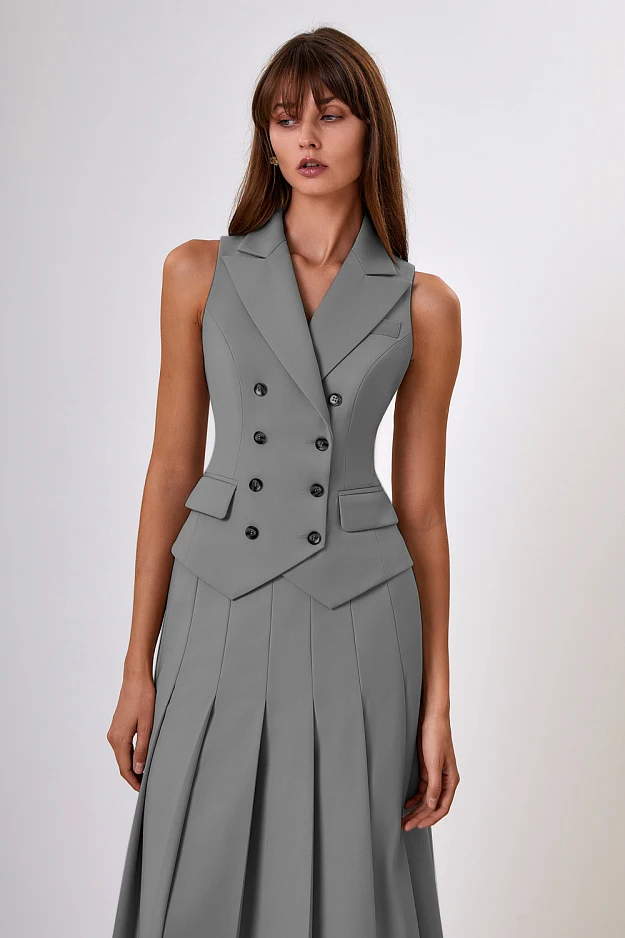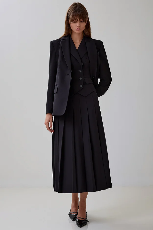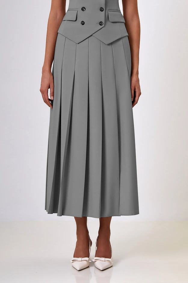 Fashion Slim Button Vest Long Skirt Women Two-piece Set Tight Vest Pleated Skirt Set Elegant Streetwear 2024 Autumn Set