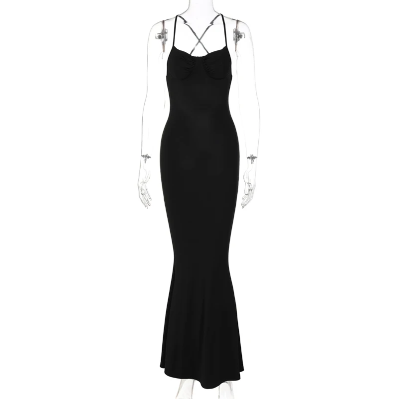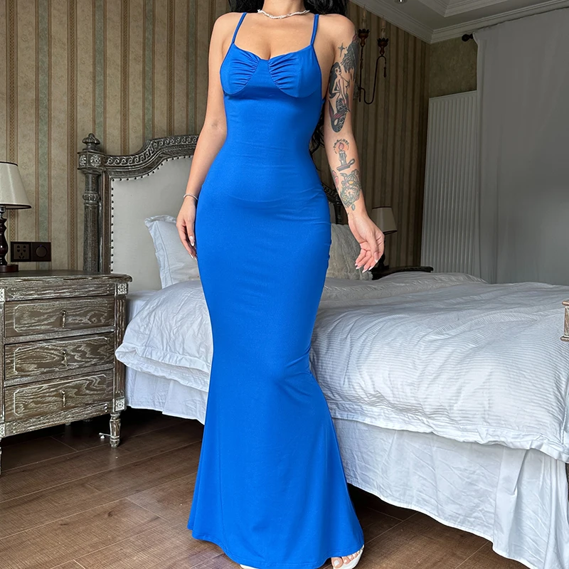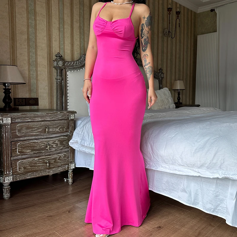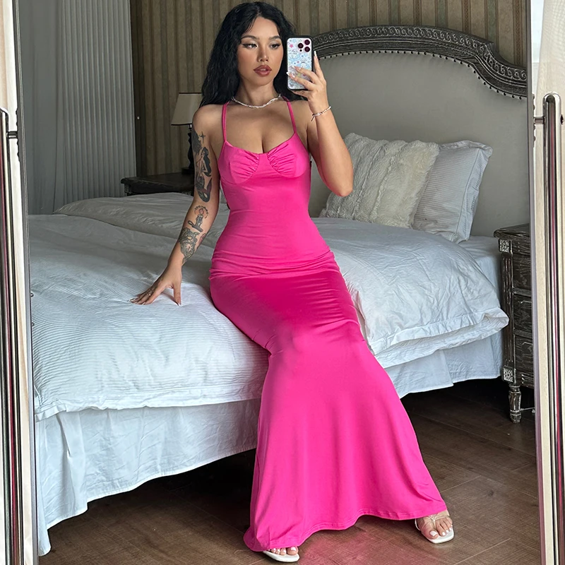 Fashion Solid Sleeveless Slip Backless Maxi Prom Dress Sexy Bodycon Summer Women Elegant Clothes Wedding Party Club Y2K