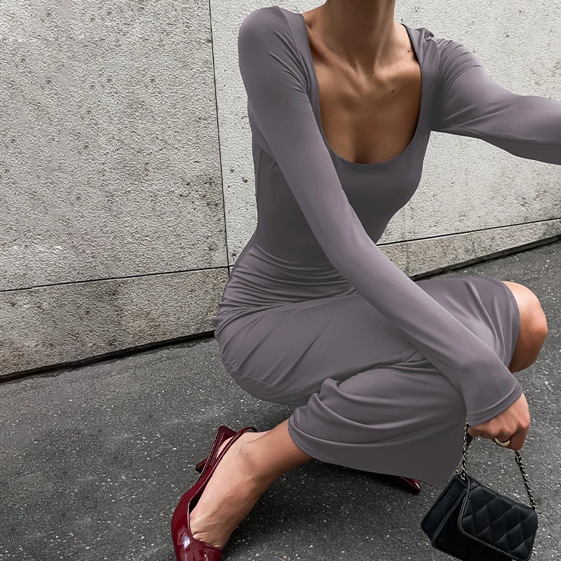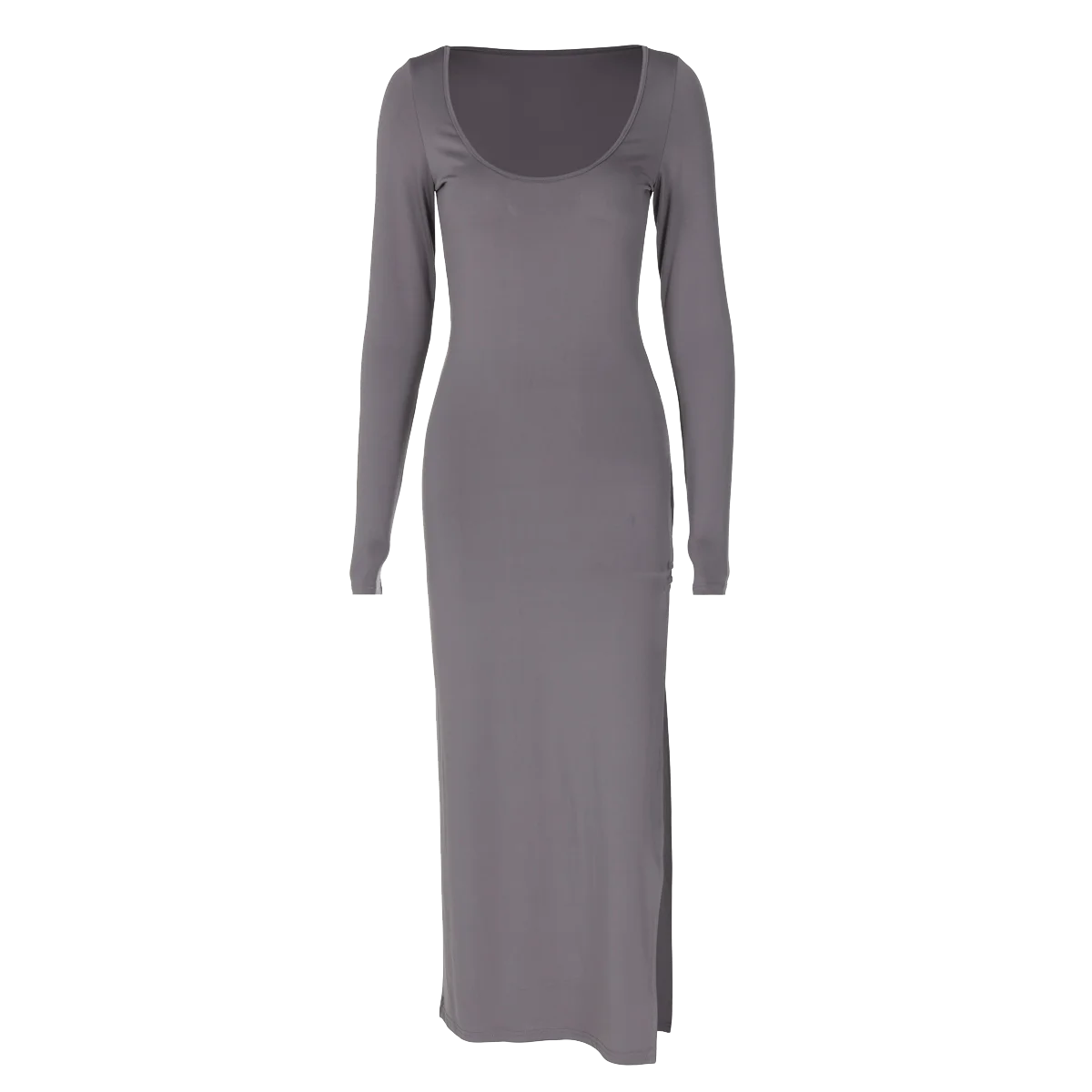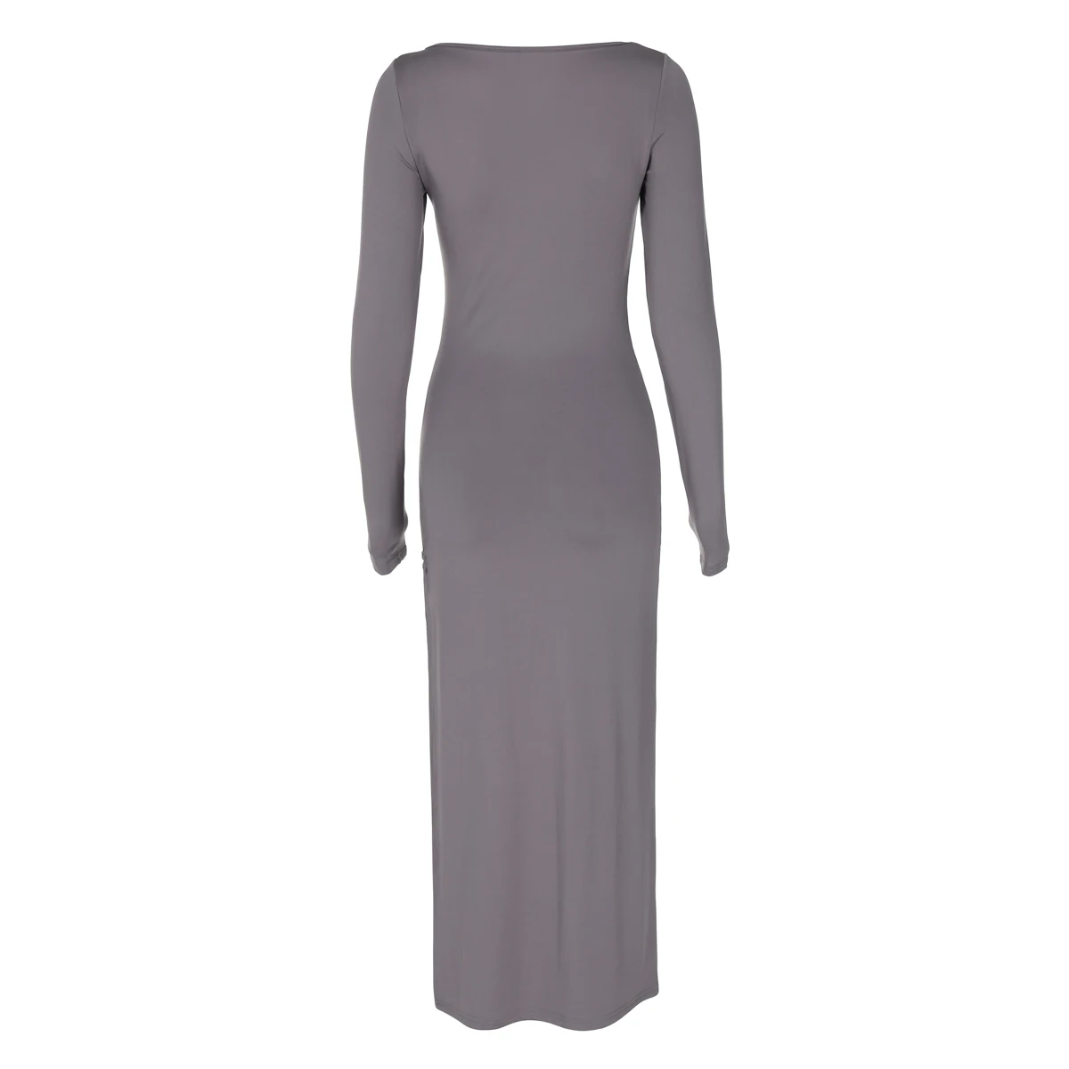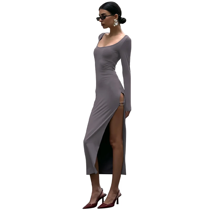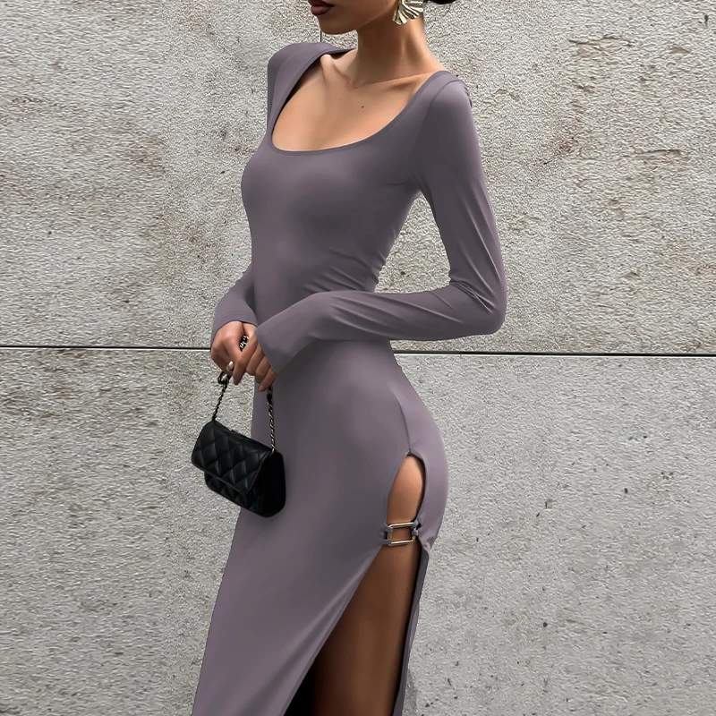 Fashion Solid Square Collar Straps Slit Sexy Bodycon Maxi Dress Fall Women Y2K Outfits Birthday Party Vacation