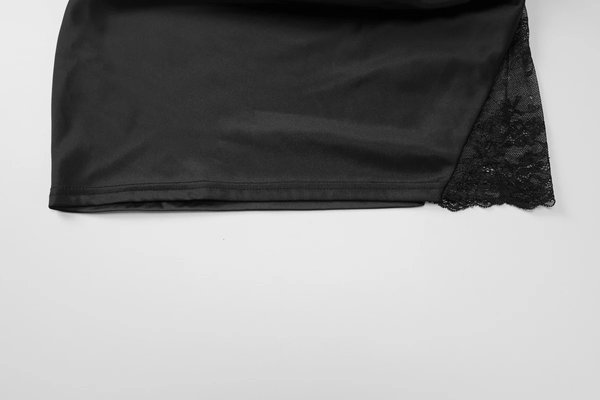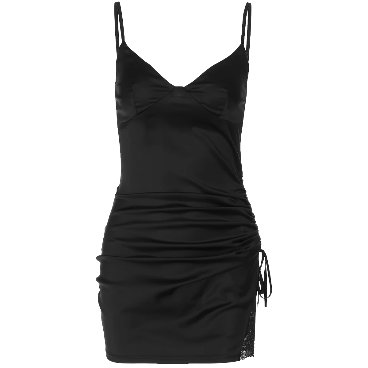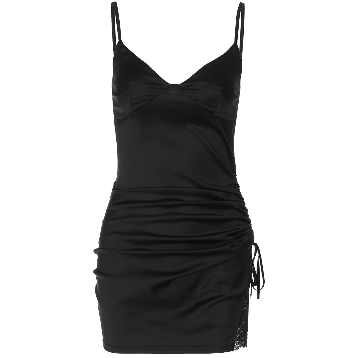 Fashion Solid V Neck Slips Backless Shirring Patchwork Lace Sexy Slim Mini Dress Summer Women Outfits Party Night Club