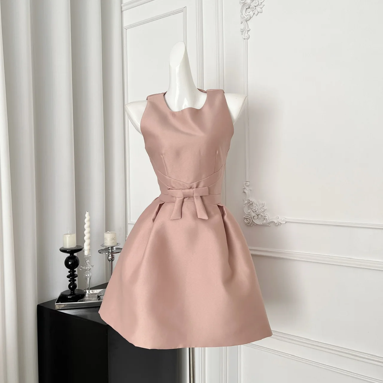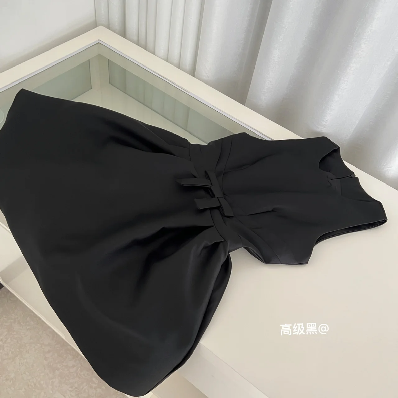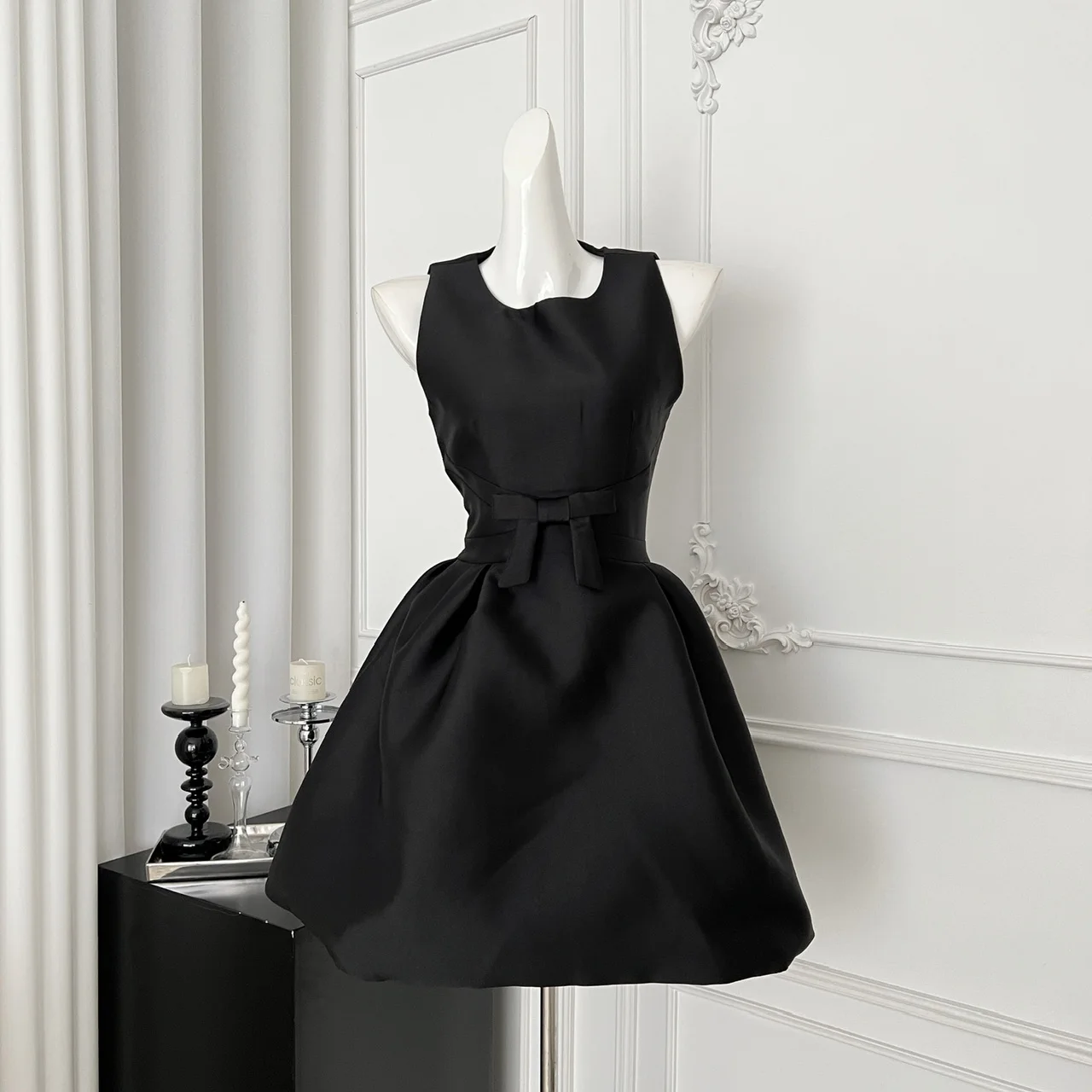 French 2025 Women Black Red Elegant Sleeveless Bow High Waist Short Vest Dress Summer Red Slim Holiday Birthday Party Mini Dress