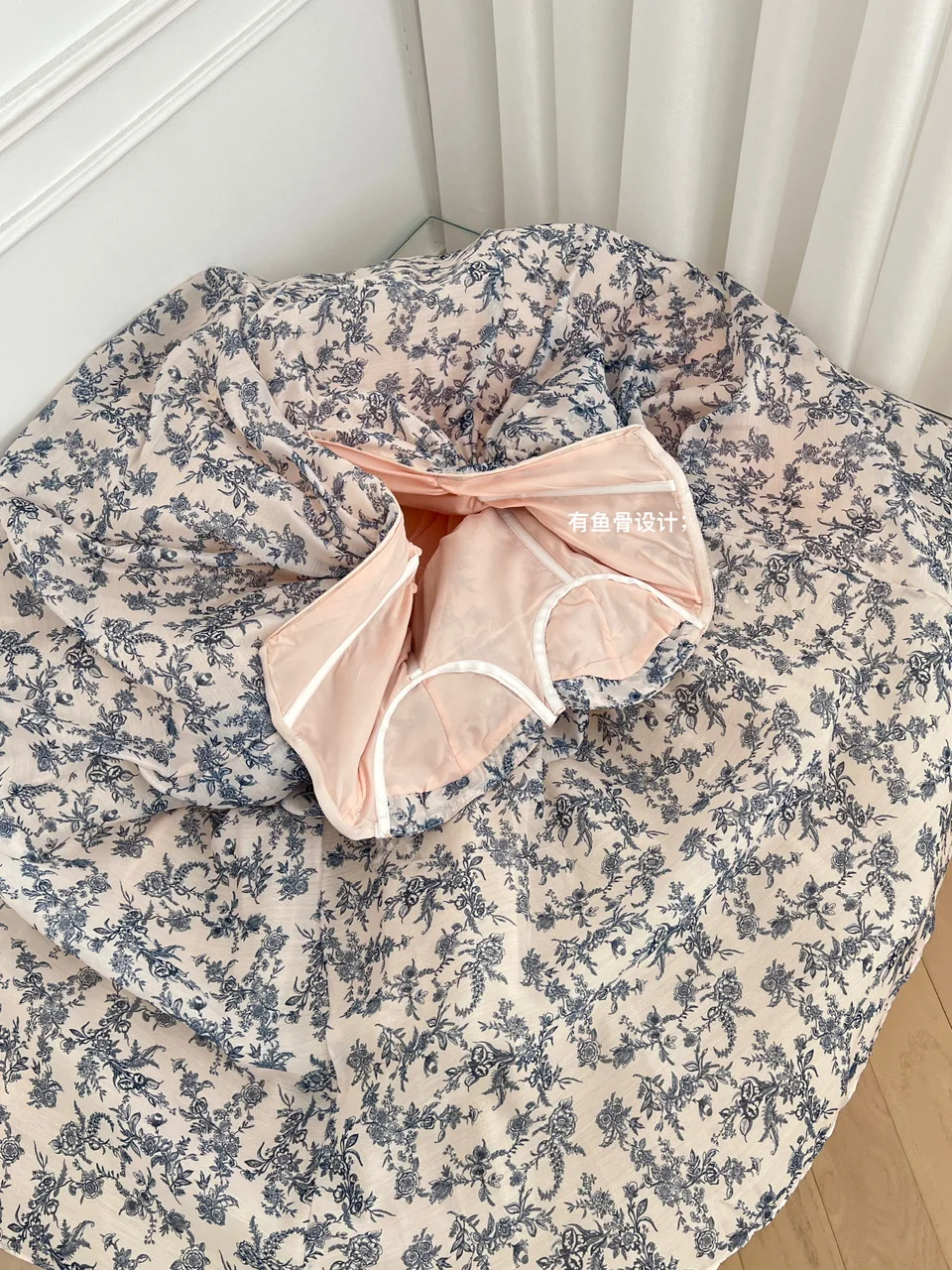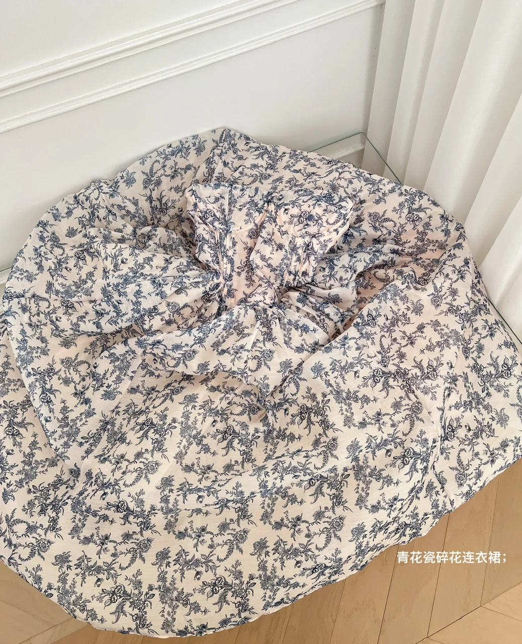 French Retro Blue Flower Backless Vacation Strapless Long Dress Summer Sexy High Waist Elegant Sleeveless Party Evening Dresses