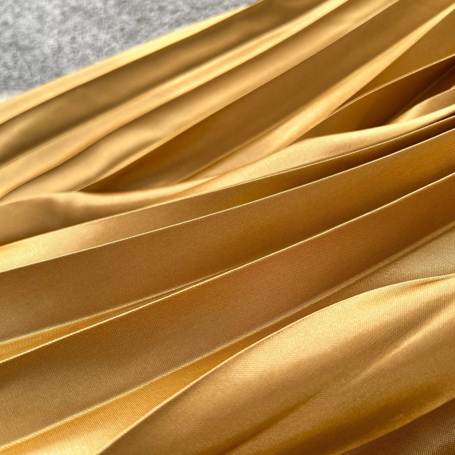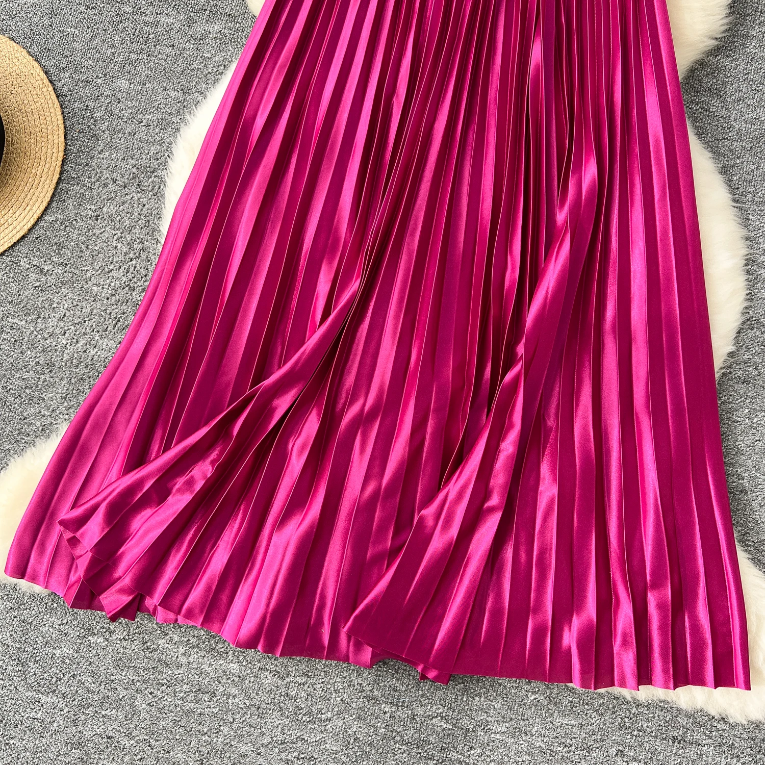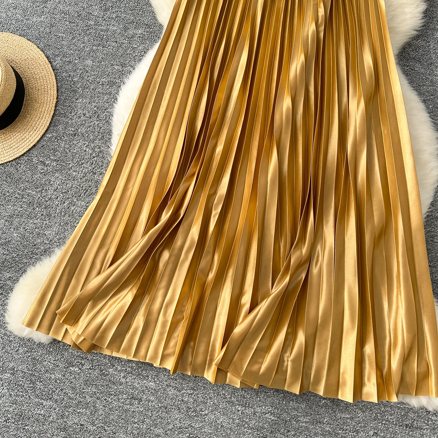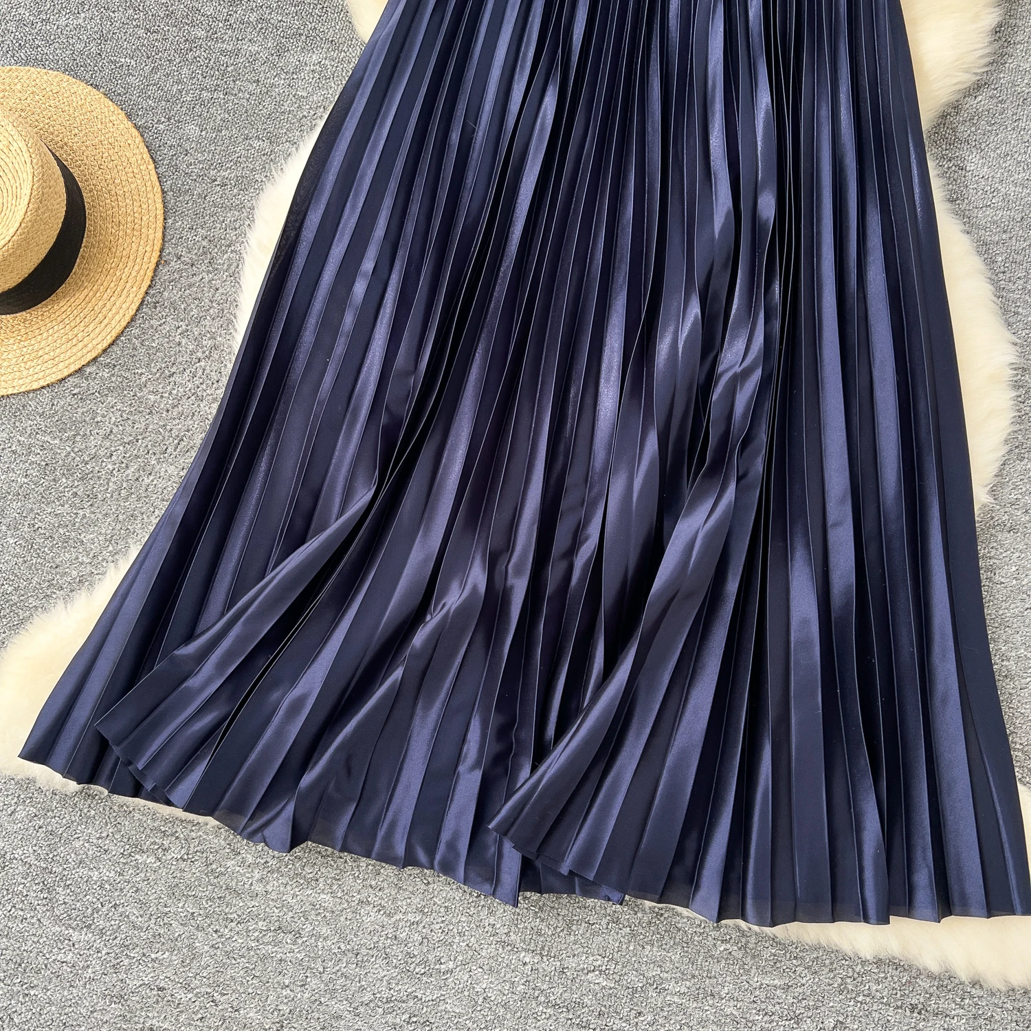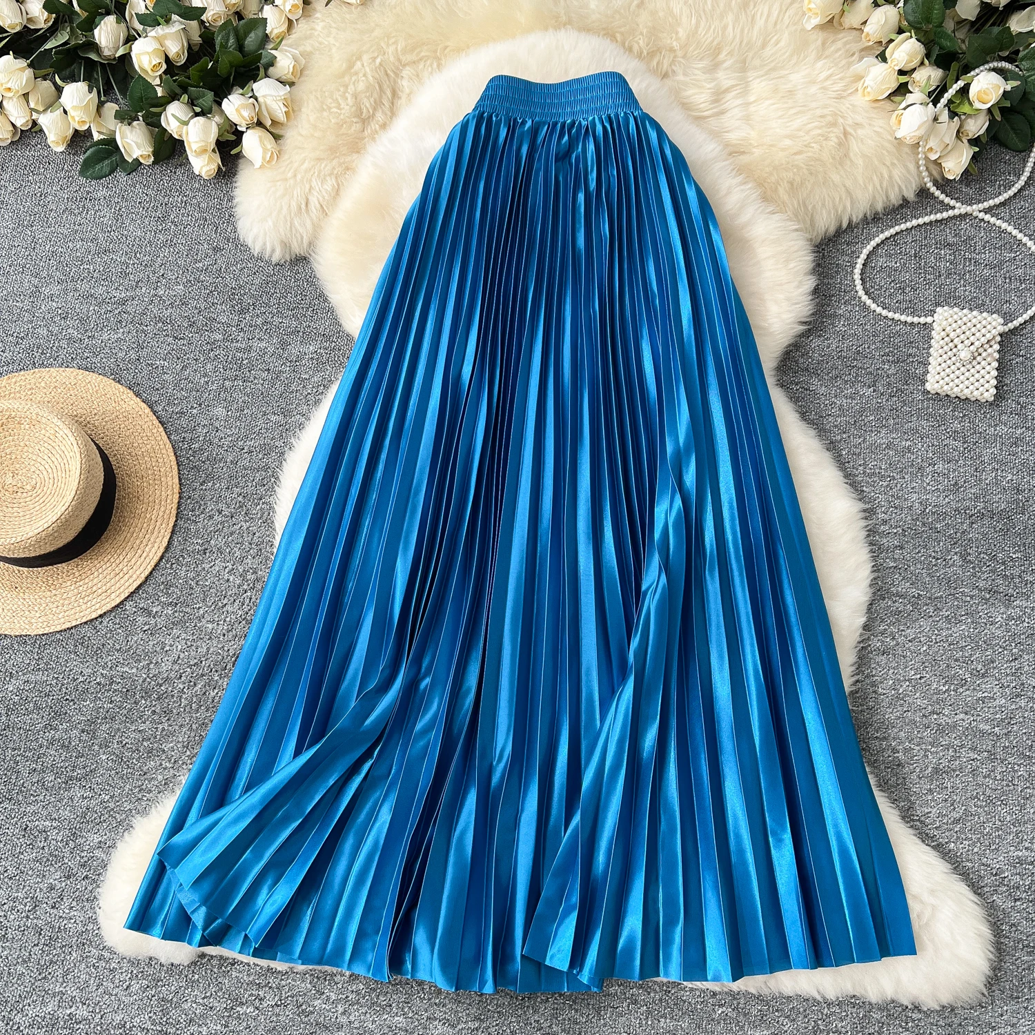 French Retro Women Fashion Solid Elegant Long Skirt Autumn Winter Elastic High Waist Popular Pleated Skirt Simplicity Streetwear