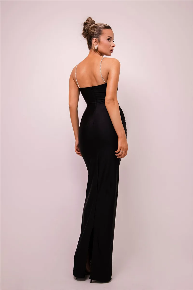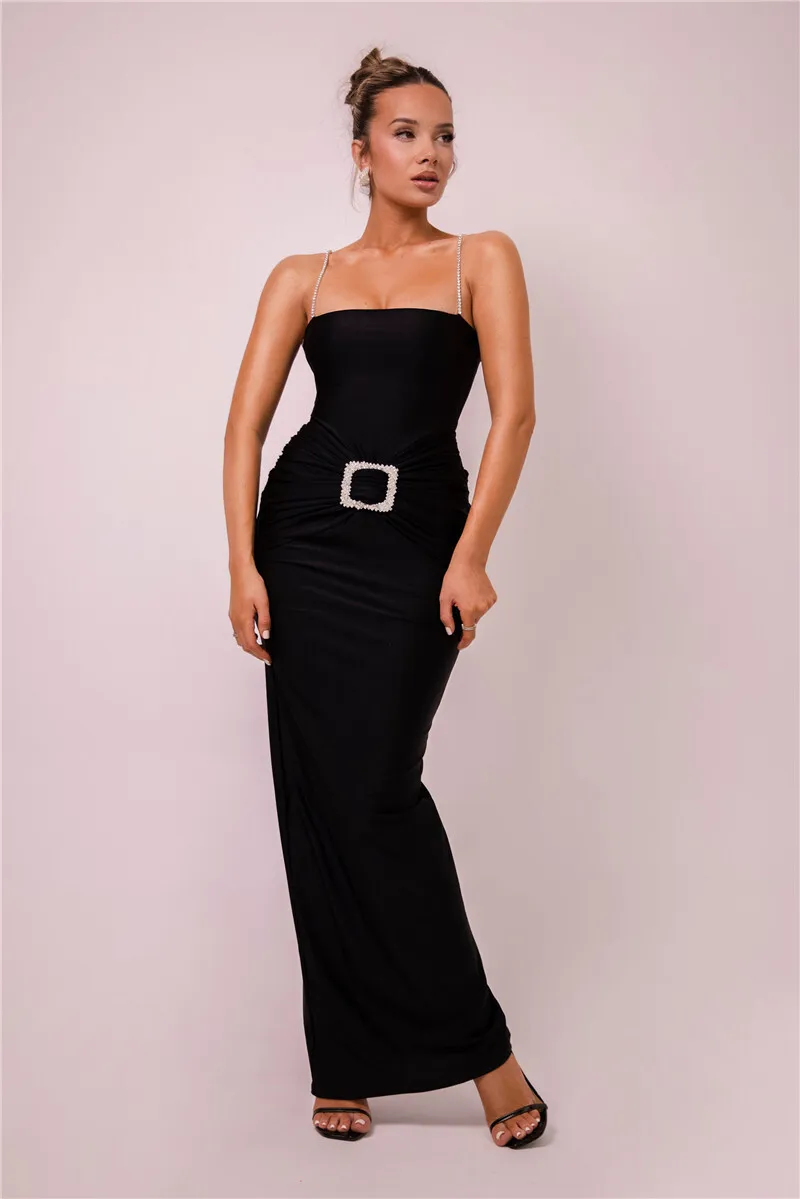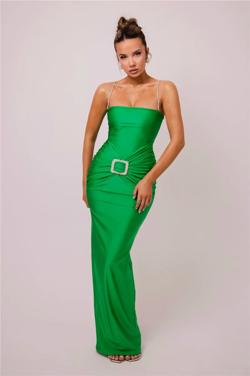 Glitter Spaghetti Strap Sexy Maxi Dress For Women Fashion Sleeveless Backless Bodycon Club Party Long Dress Elegant