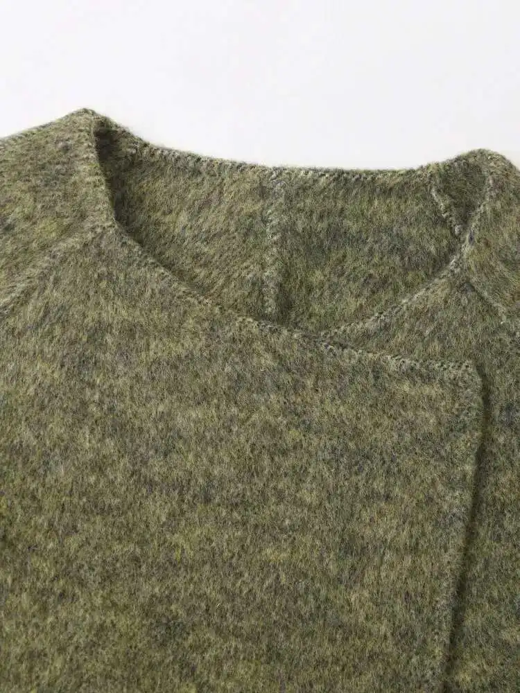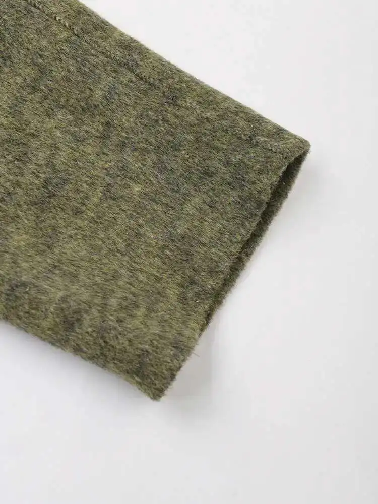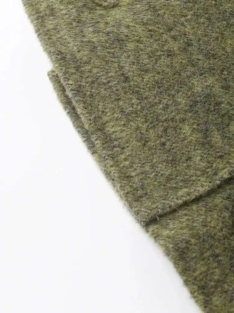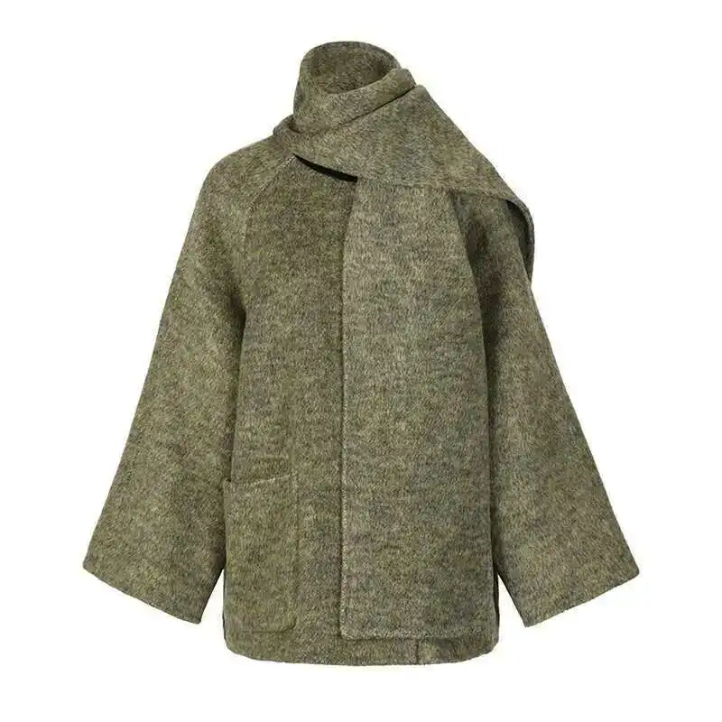 Green Big Size With Scarf Woolen Coat New Round Neck Long Sleeve Women Jacket Fashion Tide Autumn Winter 2025 2DA2386
