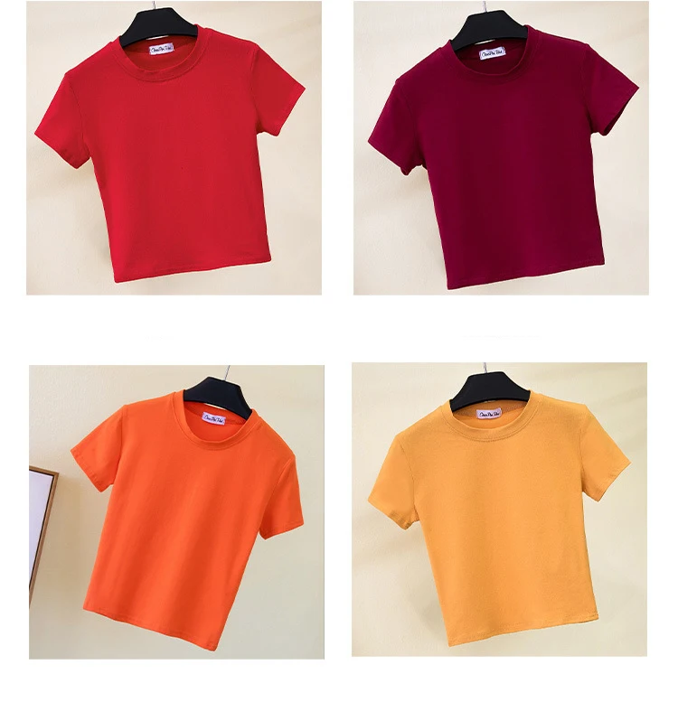 Green Crop Top T-Shirt Female Solid Cotton O-Neck Short Sleeve T-shirts for Women High Waist Slim Short Sport Femme T-Shirt