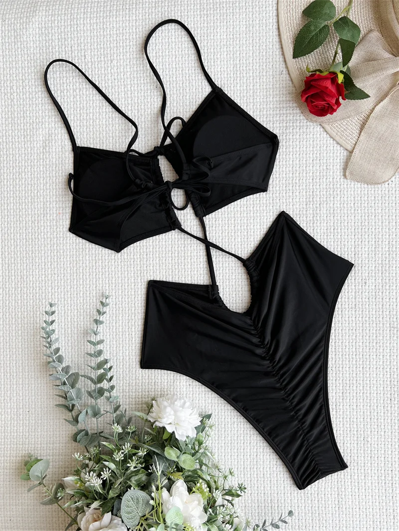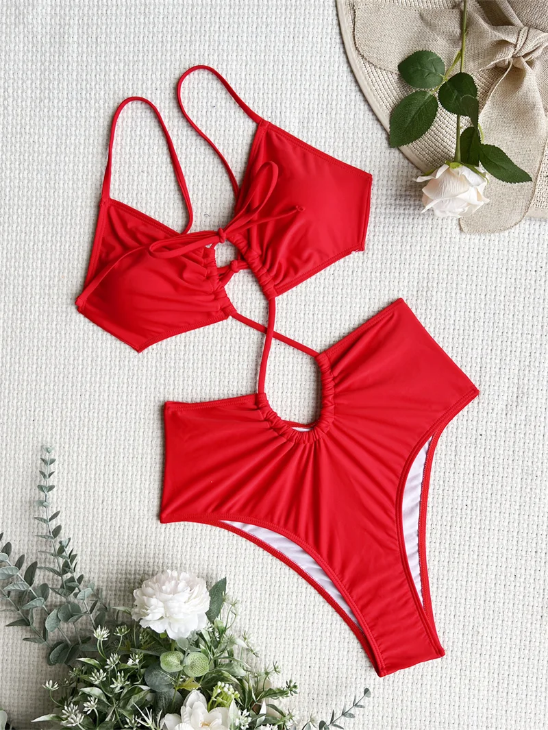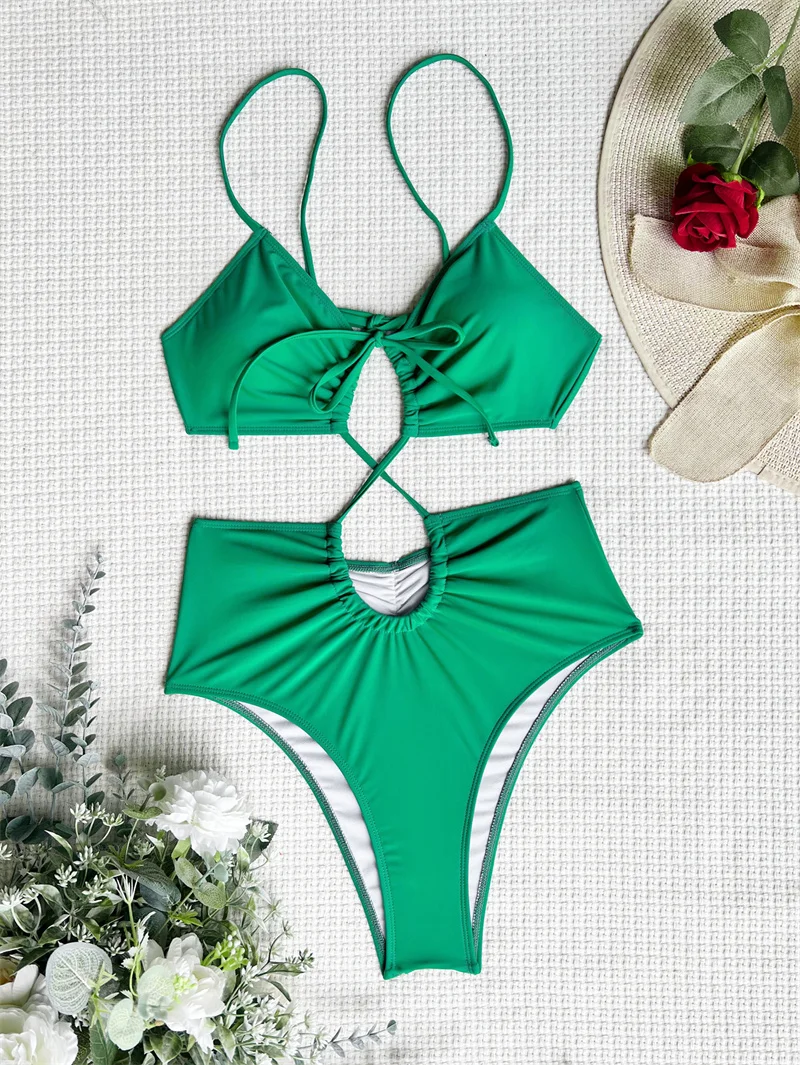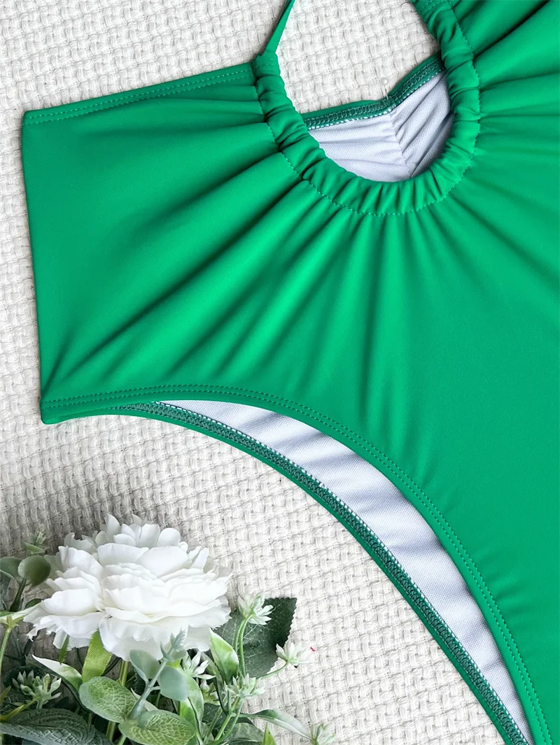 Green Hollow Out One Piece Swimsuit 2025 Swimwear Women Sexy Bathing Suit Backless Swimwear Push Up Bodysuit