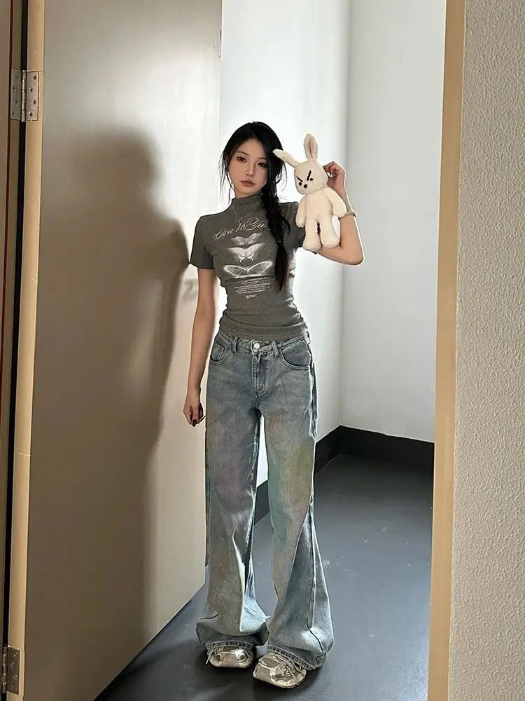 Half High Collar Summer T Shirts for Women Short Sleeve Tunic Tees Crop Tops 2024 Ropa Mujer Casual Fashion Summer Y2k Tshirt