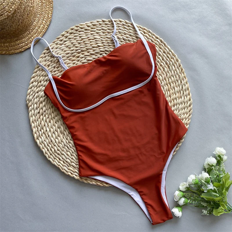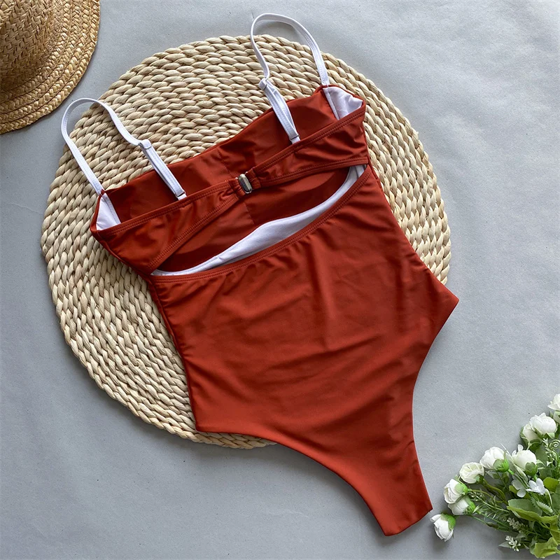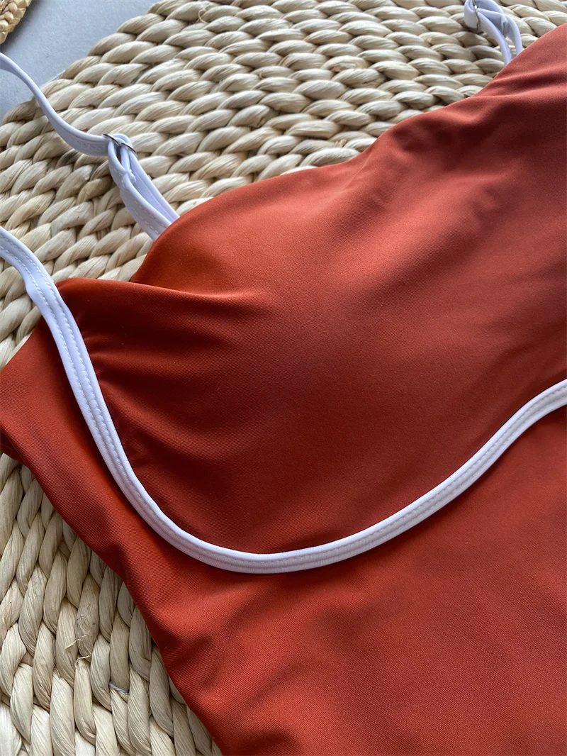 Halter Bandeau One Piece Swimsuit 2024 Swimwear for Women Sexy High Waist Bathing Suit Patchwork Monokini