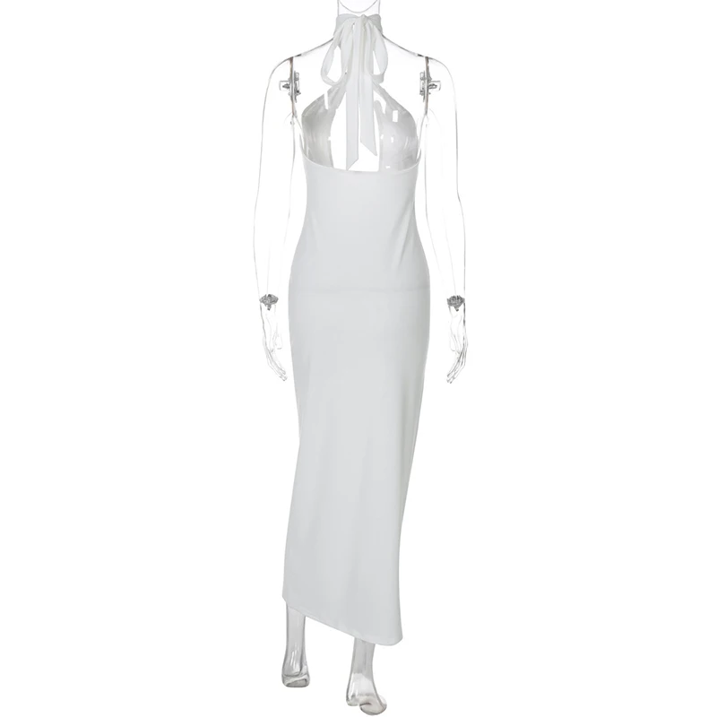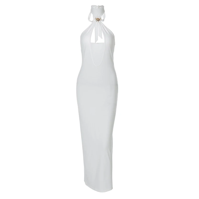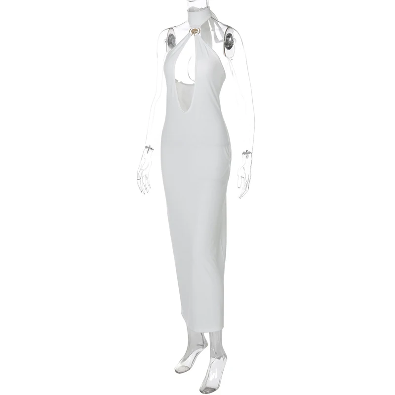 Halter Hollow Out Sexy Maxi Dress For Women Gown Fashion Off-shoulder Sleeveless Backless Bodycon Beach Club Dress