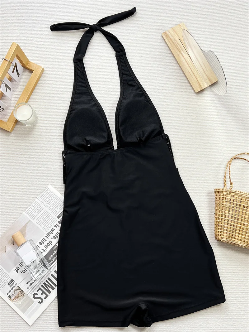 Halter One Piece Swimsuit 2024 Drawstring Swimwear for Women Sexy High Cut Bathing Suit Backless Monokini
