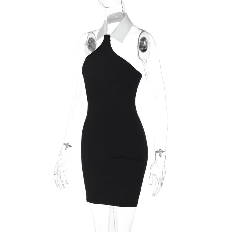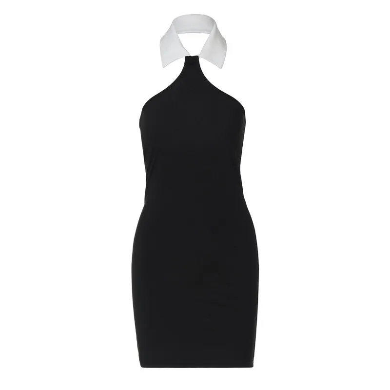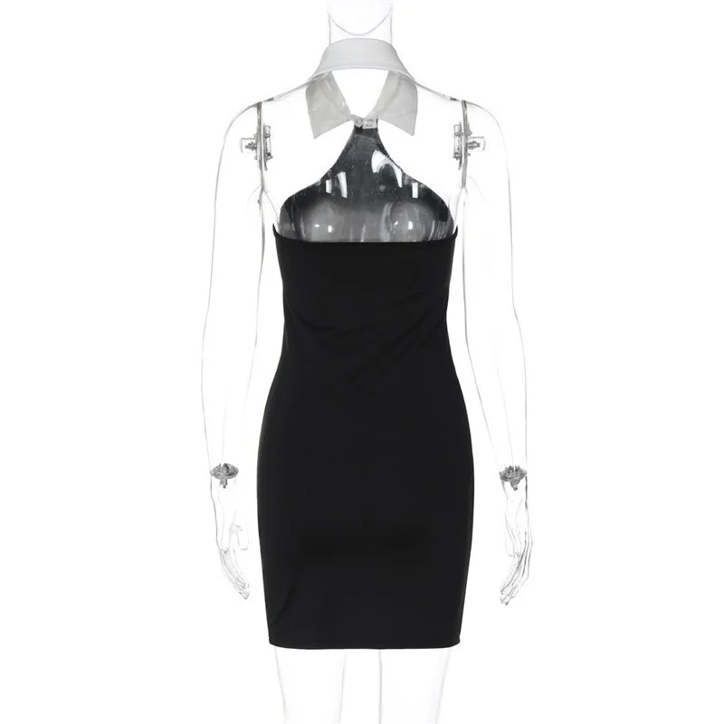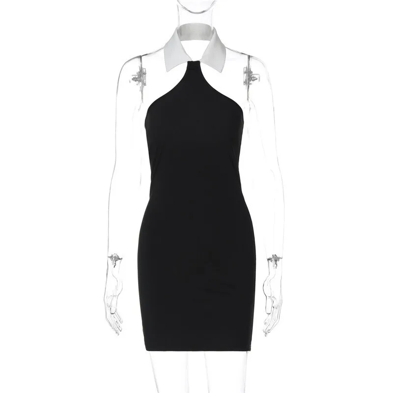 Halter Sleeveless Sexy Mini Dress For Women Fashion Patchwork Off-shoulder Backless Skinny Club Sexy Party Dress