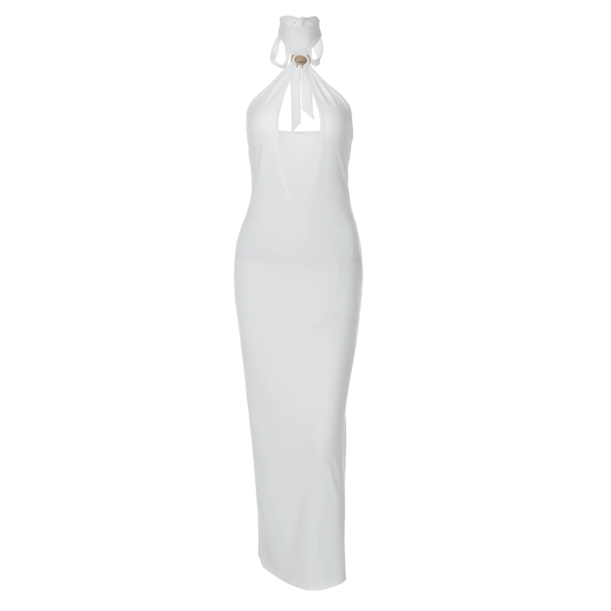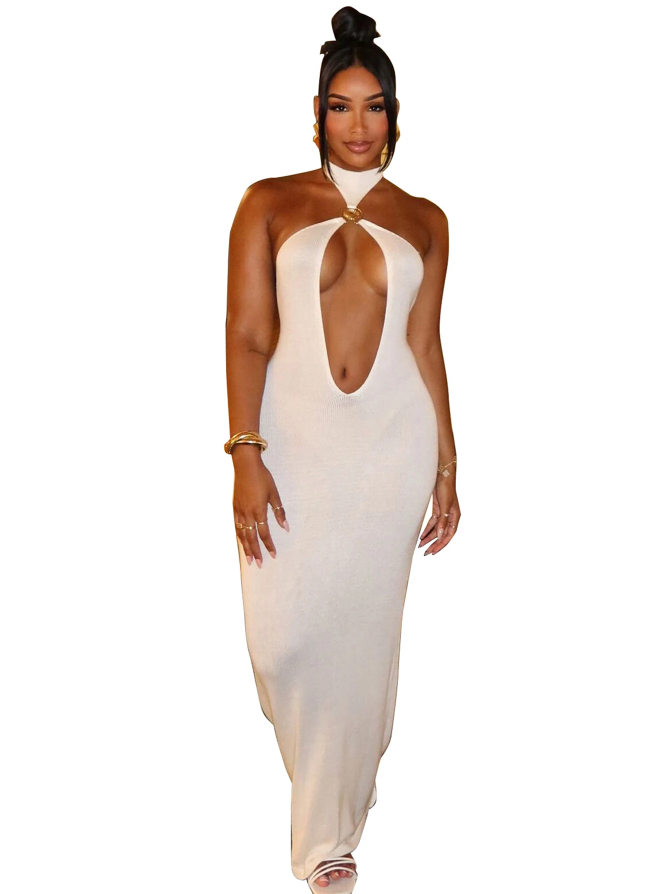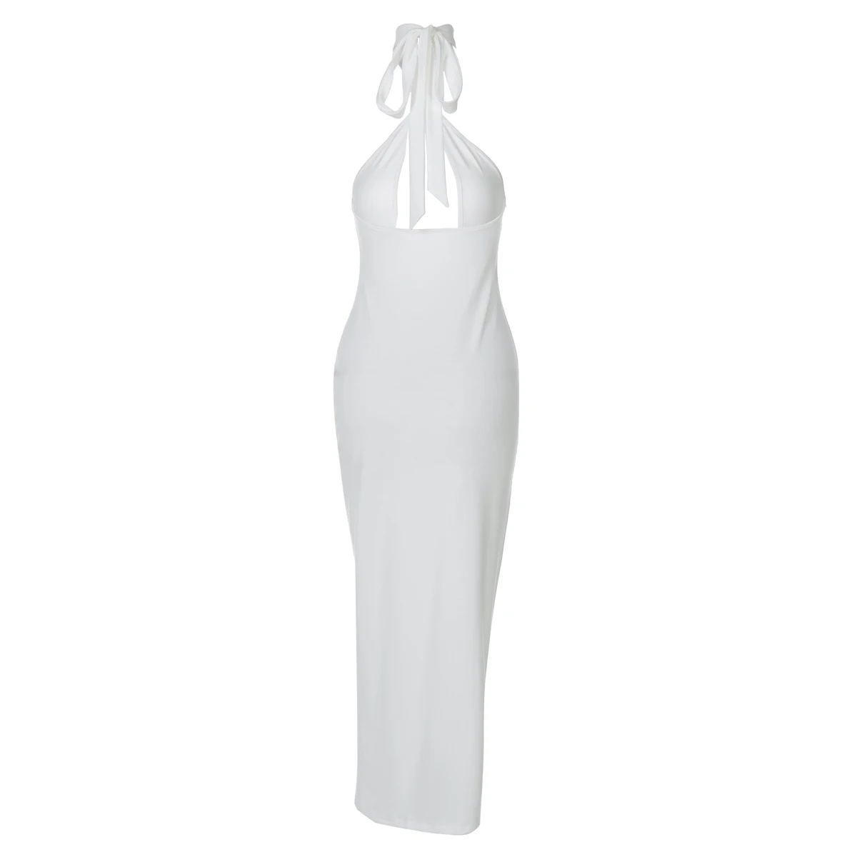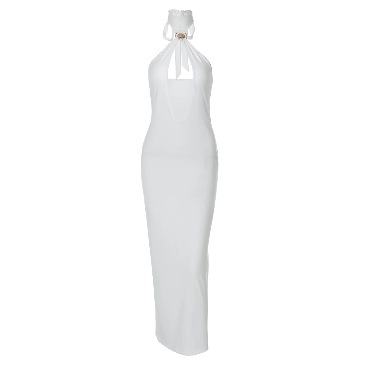 Halter Solid Sleeveless Backless Hollow Out Sexy Bodycon Maxi Dress Summer Women Fashion Y2K Outfits Streetwear Party
