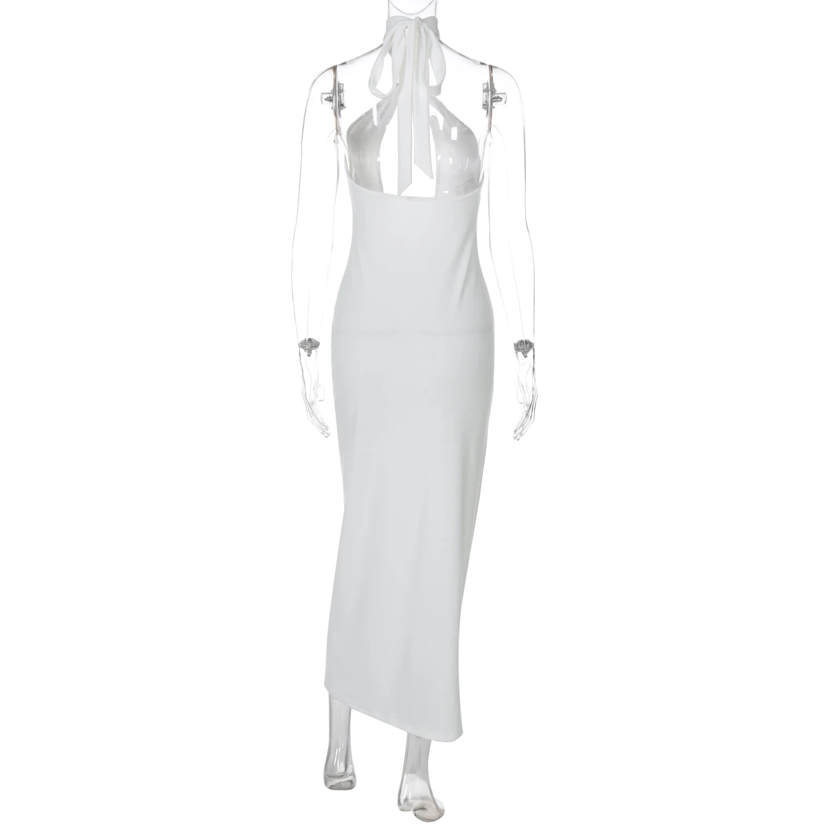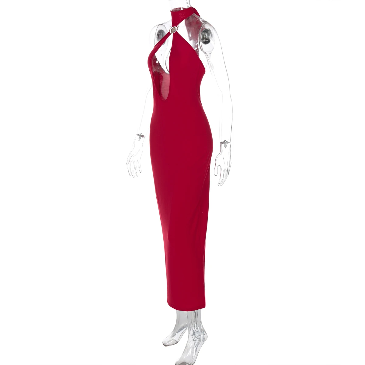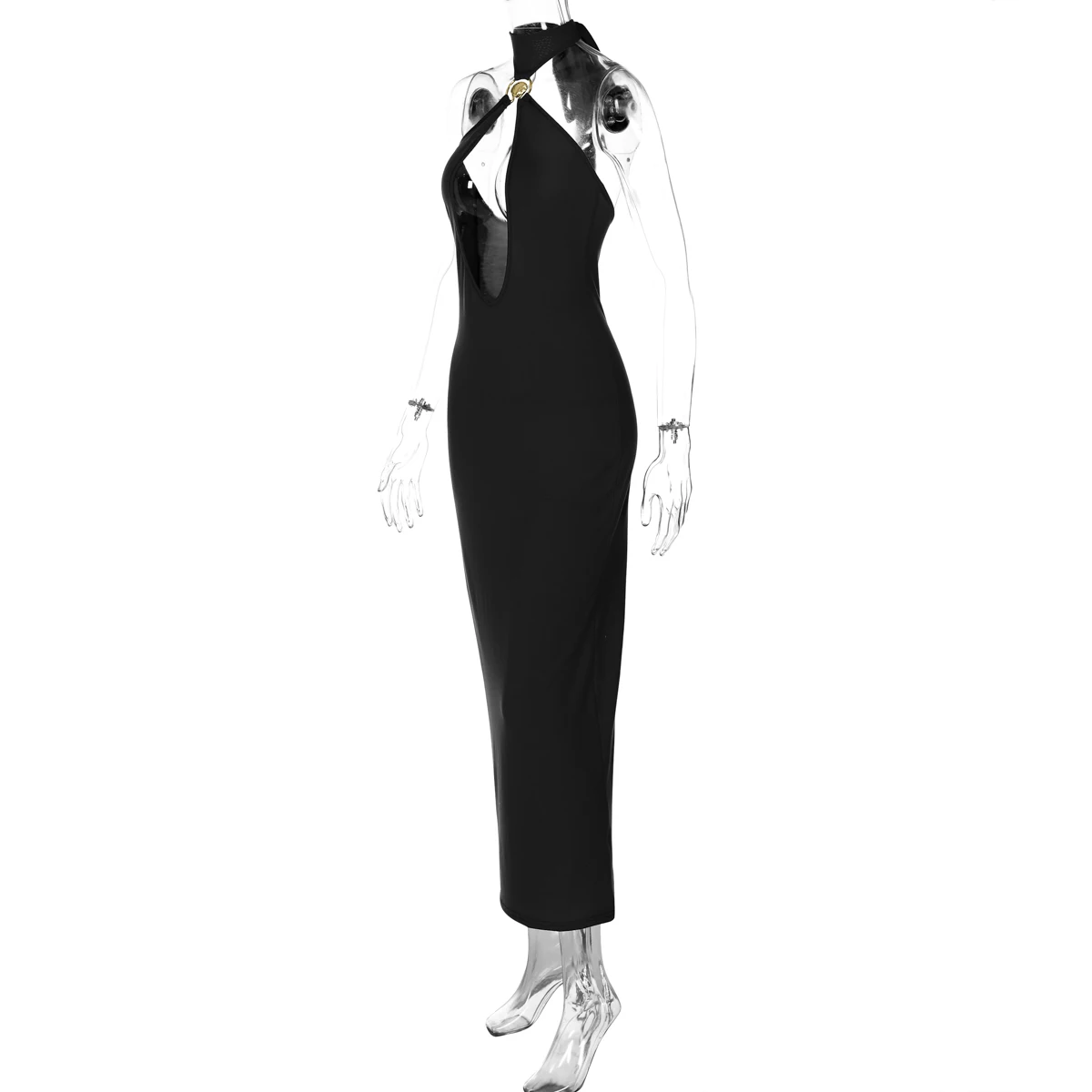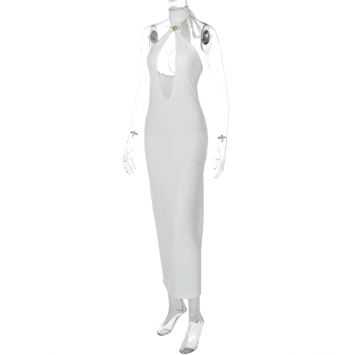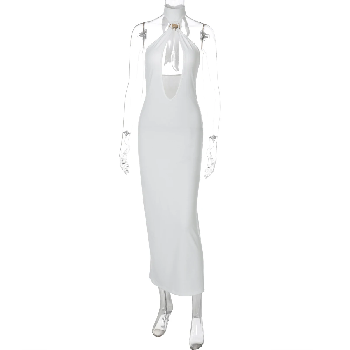 Halter Solid Sleeveless Backless Hollow Out Sexy Bodycon Maxi Dress Summer Women Fashion Y2K Outfits Streetwear Party