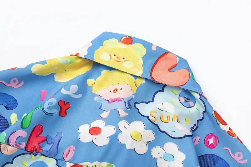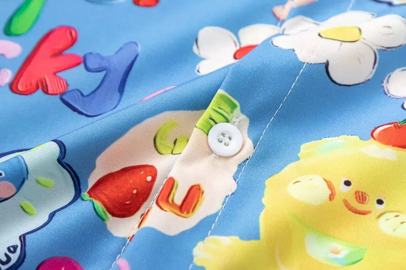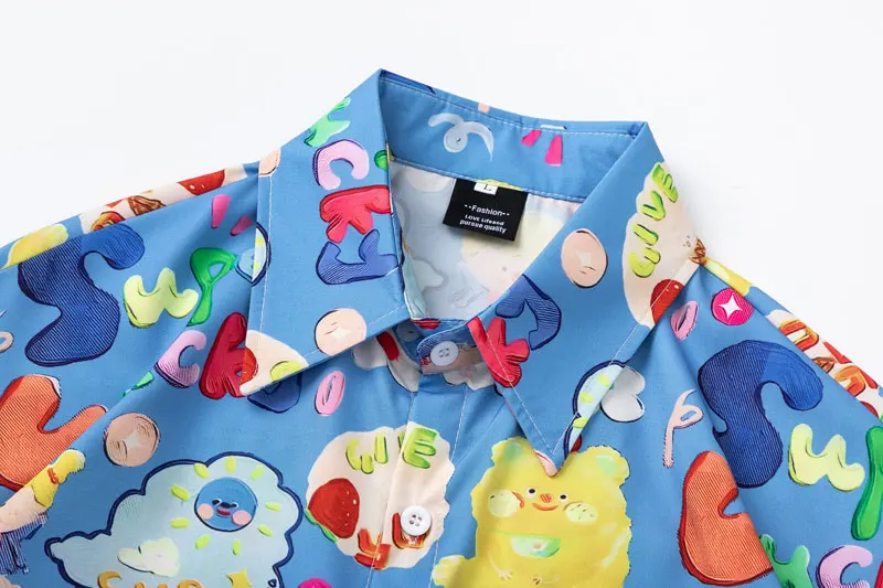 Harajuku Hawaiian Shirts Streetwear Cartoon Graphic Printed Button Up Summer Beach Blouse Hip Hop Casual Baggy Short Sleeve Tops