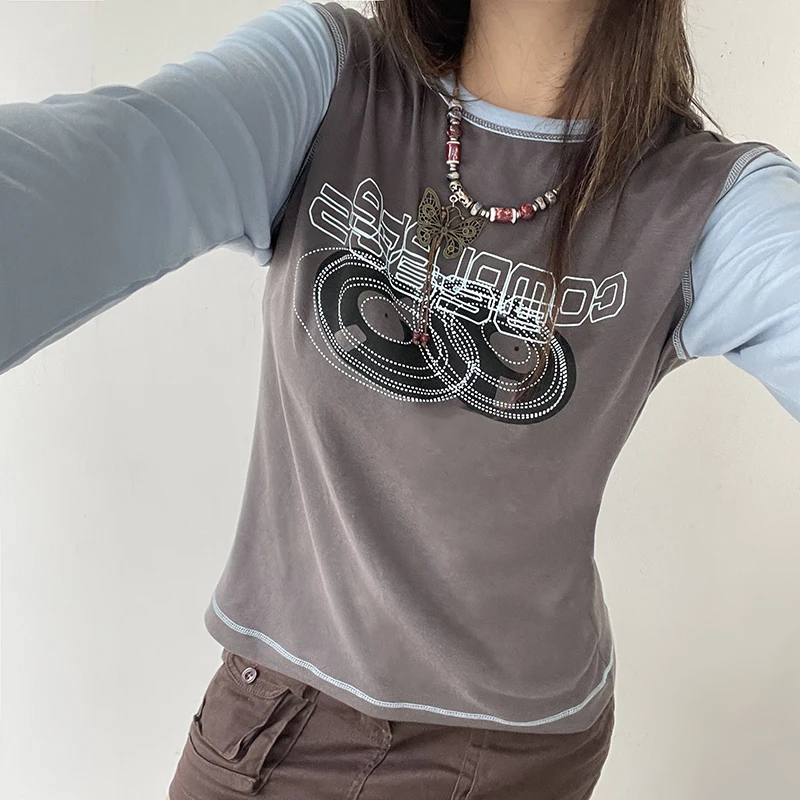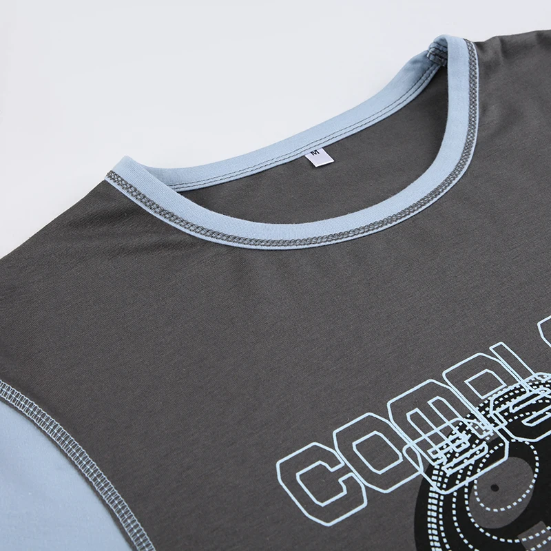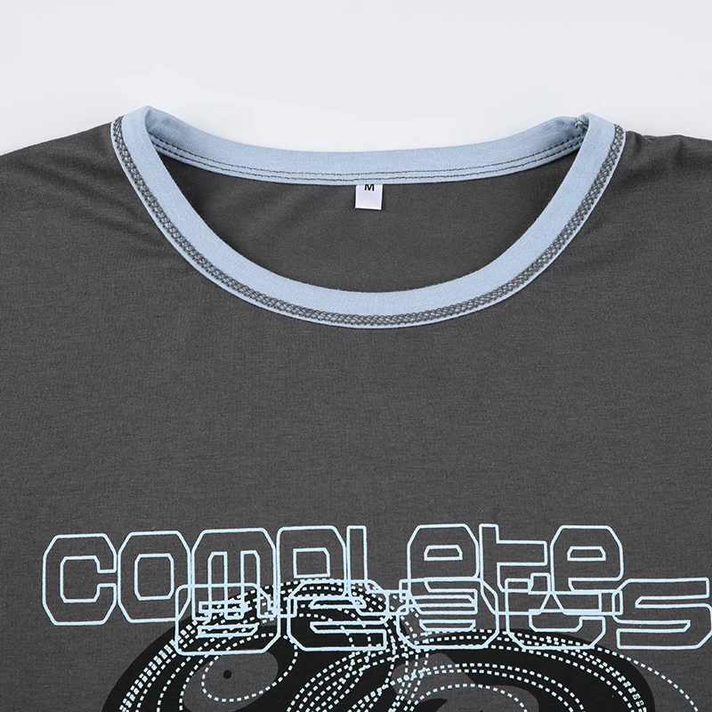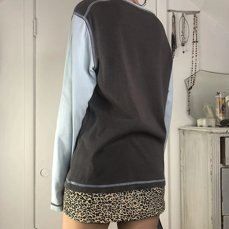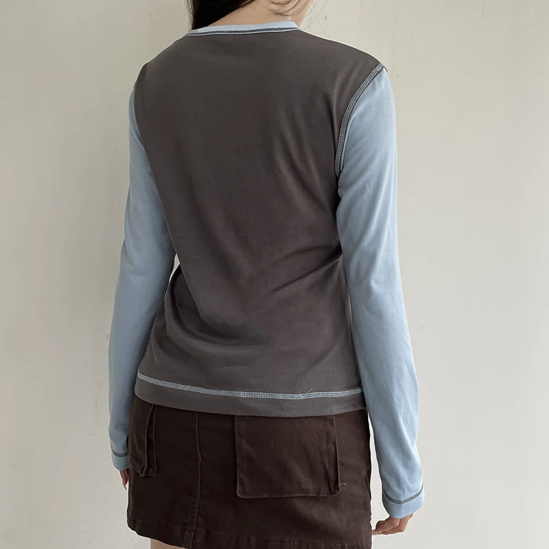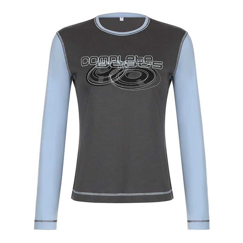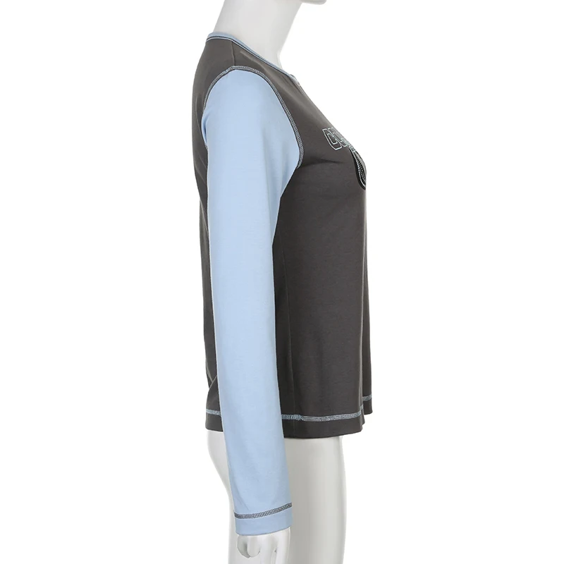 Harajuku Letter Printed Autumn T Shirt Women Line Stitching Casual Pullover Top Contrast Preppy Style Sweats Outfits