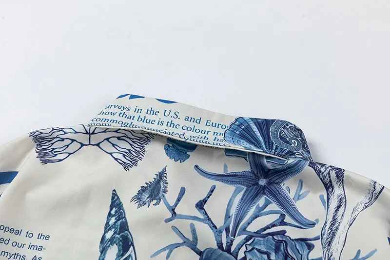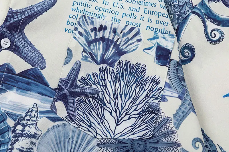 Harajuku Oversize Shirts Summer Retro Sea World Letter Graphic Print Button Up Blouse Streetwear Hip Hop Loose Short Sleeve Tops