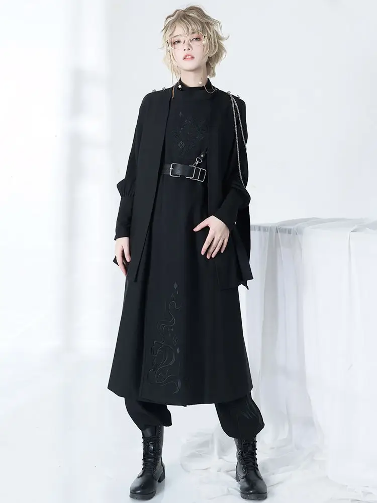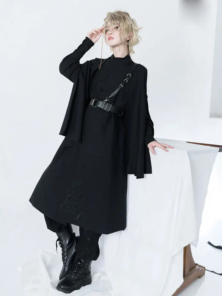 Harajuku Women Black Jackets Gothic Vintage Cloak Coats Y2k Aesthetic Loose Zipper Jacket Streetwear Grunge Sleeveless Split Top