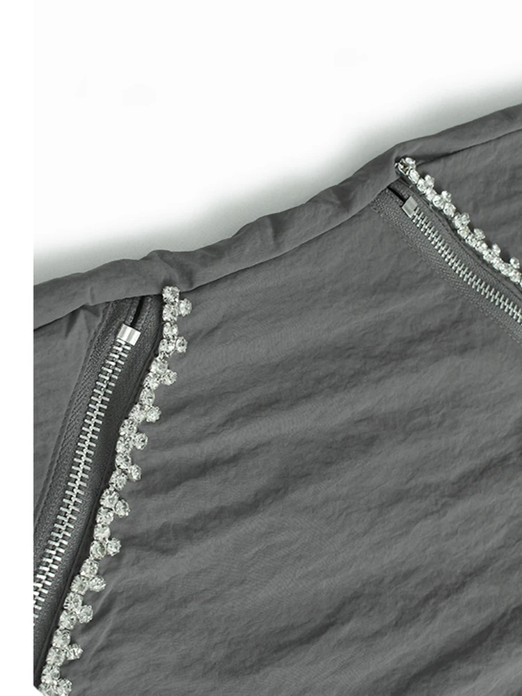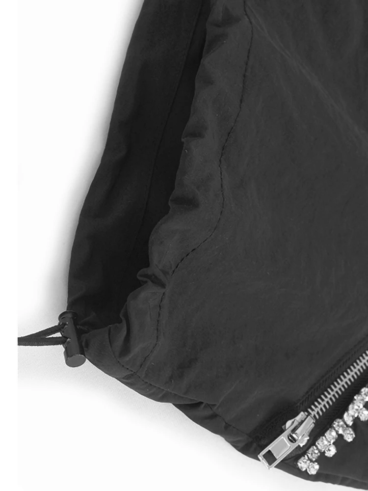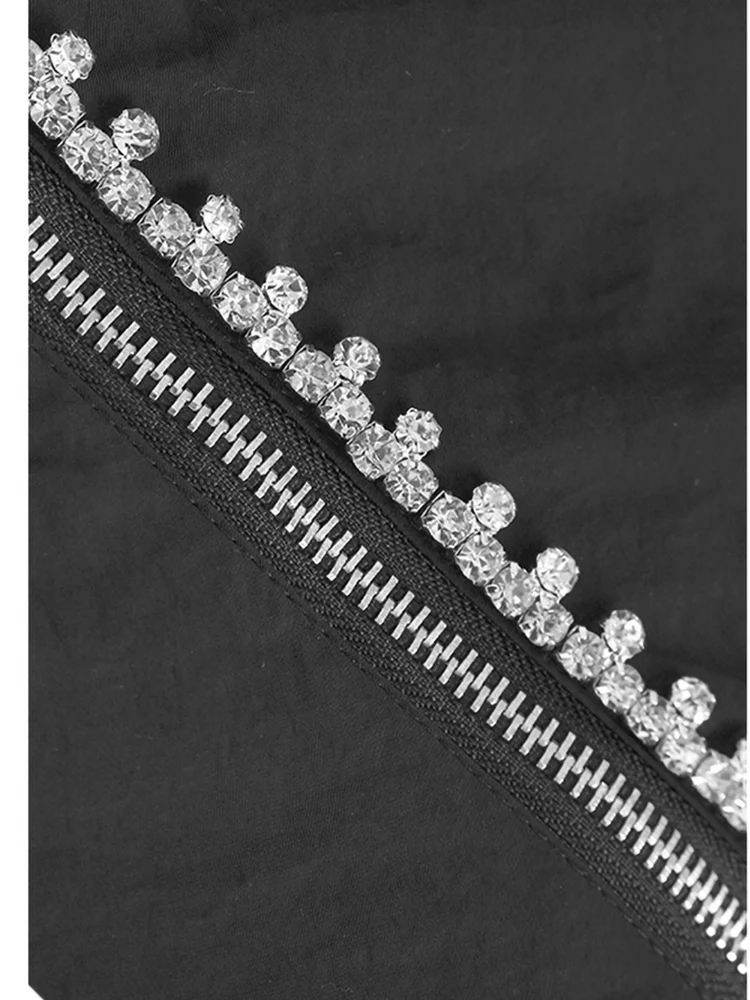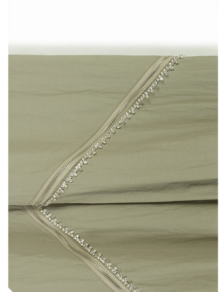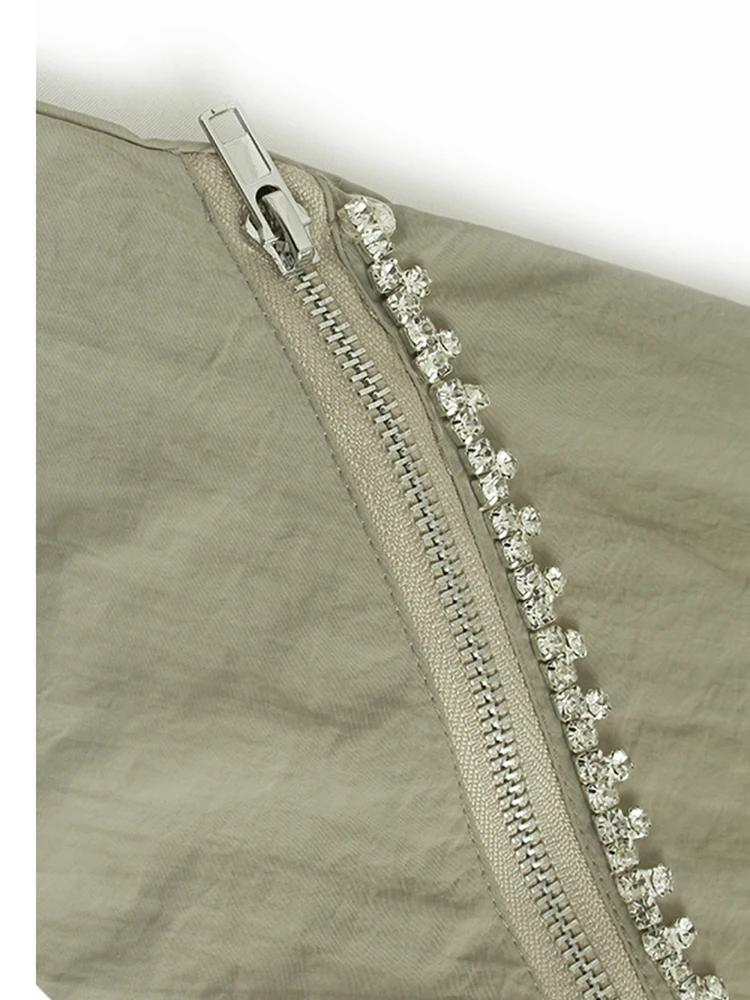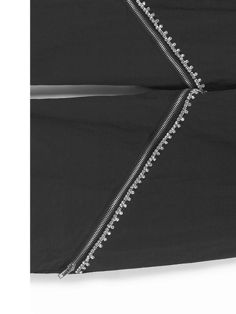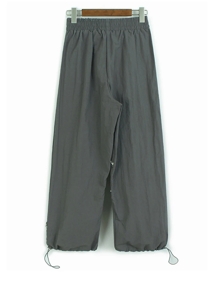 High Elastic Waist Apricot Rhinestones Zipper Wide Leg Pants New Trousers Women Fashion Tide Spring Autumn 2025 1DJ1192