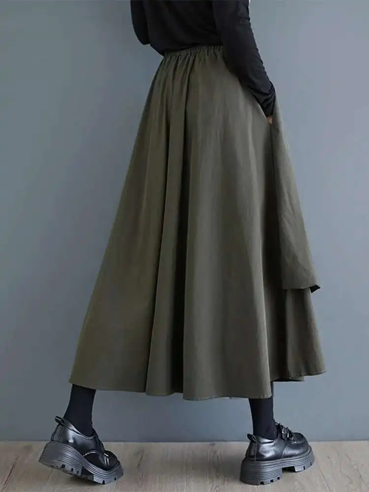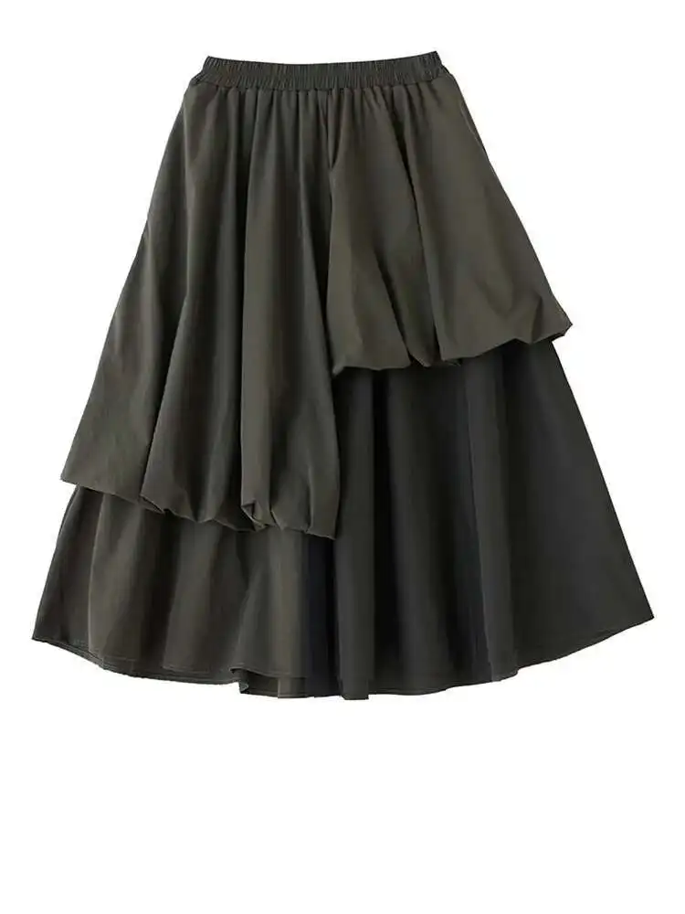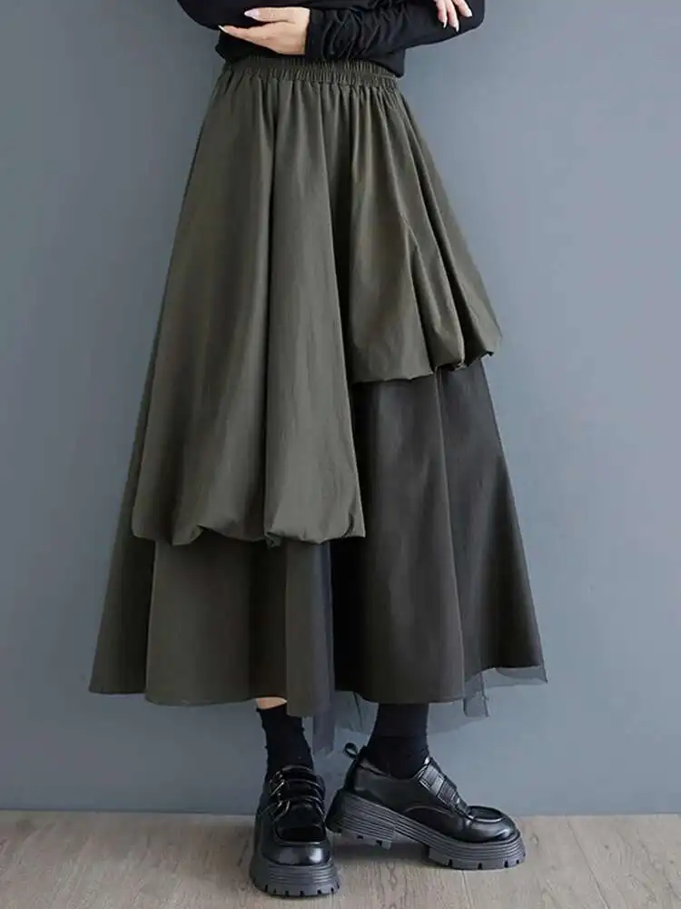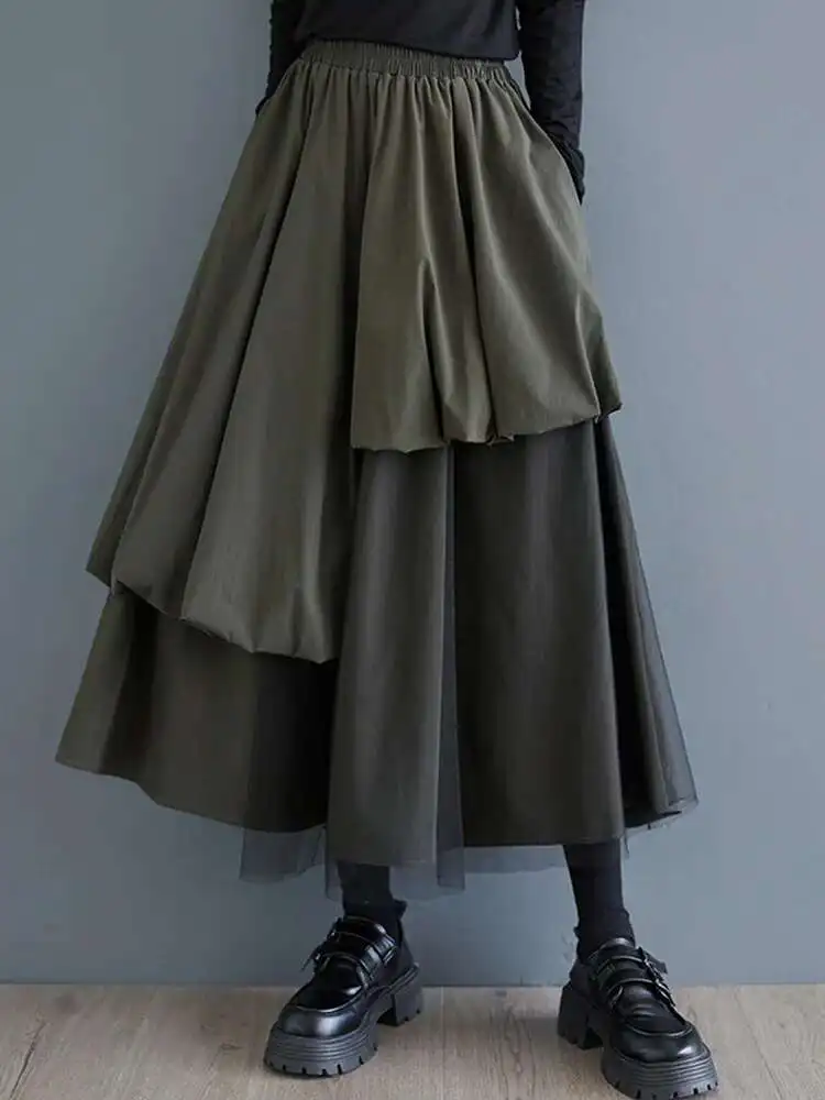 High Elastic Waist Army Green Mesh Irregular A-line Half-body Skirt Women Fashion Tide New Spring Autumn 2025 1DJ0313