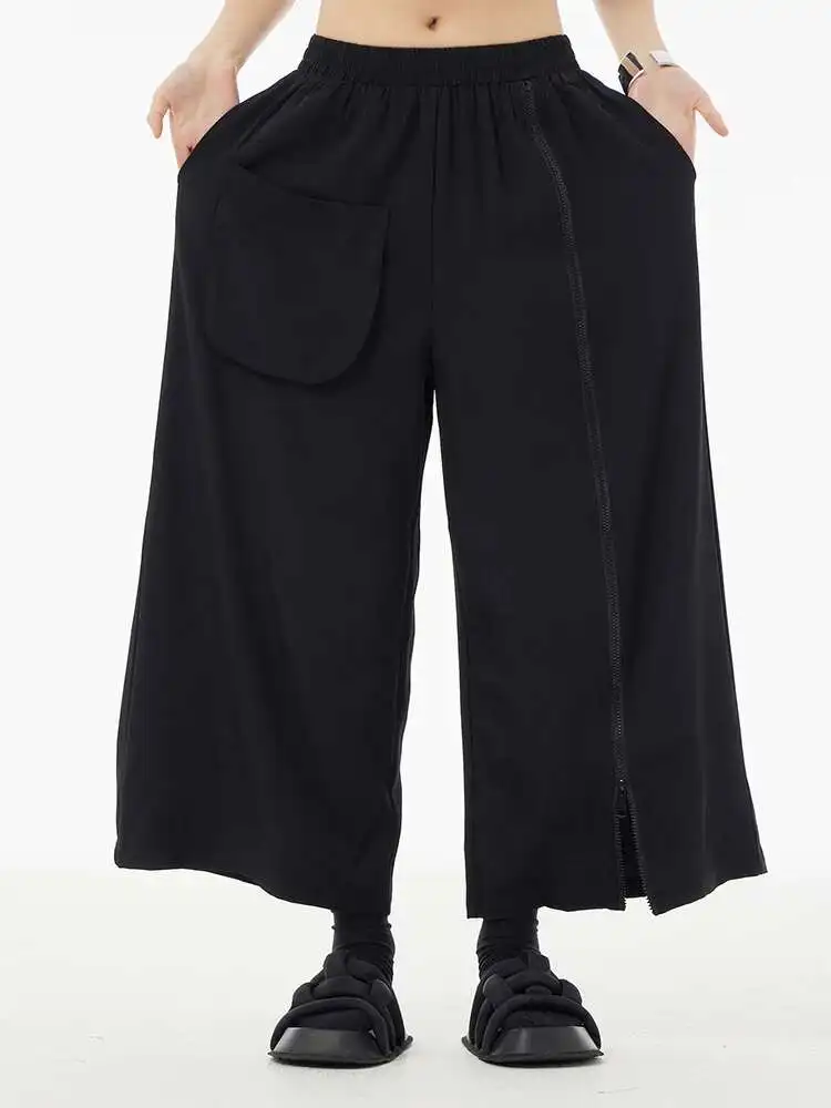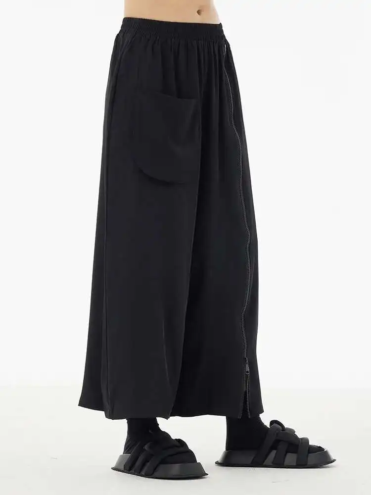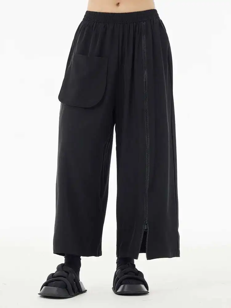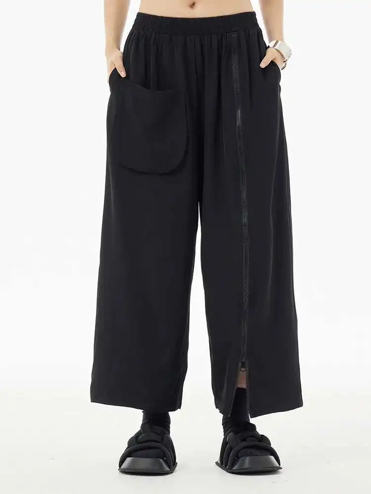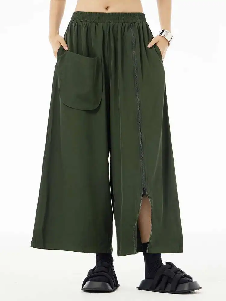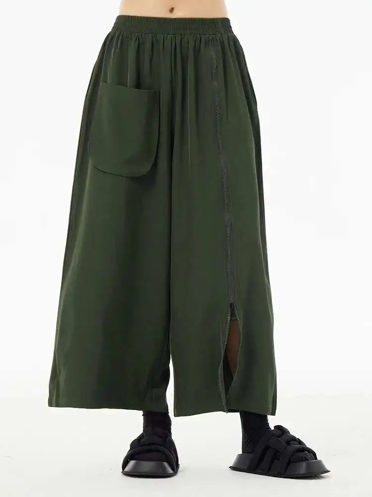 High Elastic Waist Army Green Zipper Slit Long Wide Leg Pants New Trousers Women Fashion Tide Spring Autumn 2025 1DH5683