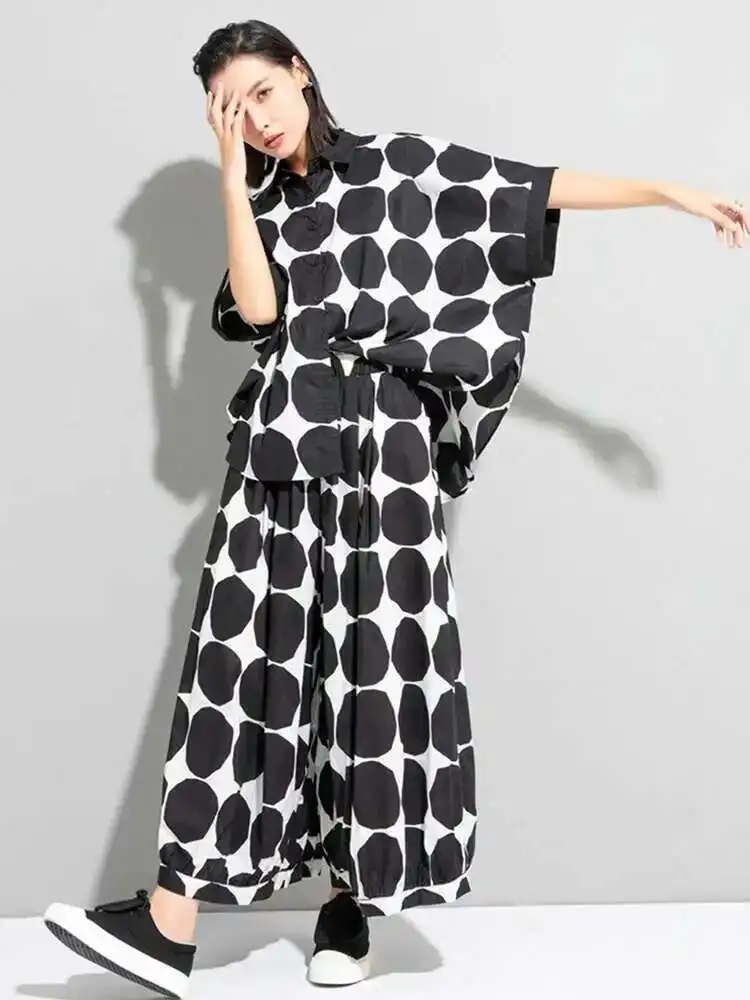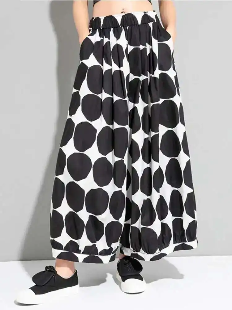 High Elastic Waist Black Dot Printed Long Wide Leg Trousers New Loose Fit Pants Women Fashion Spring Autumn 2025 1DE6981