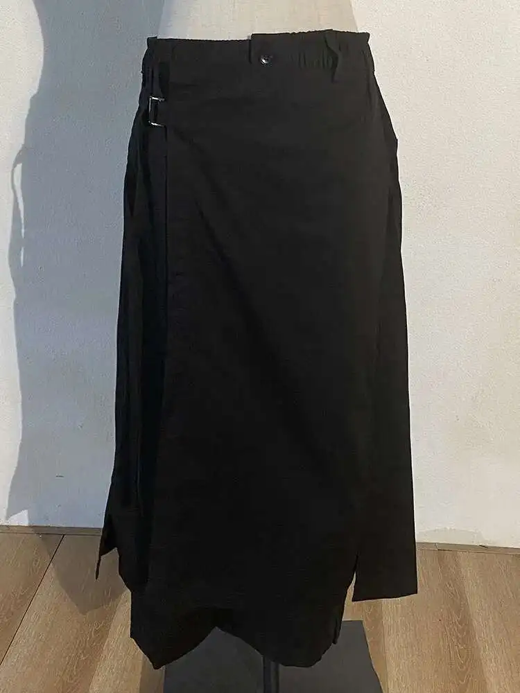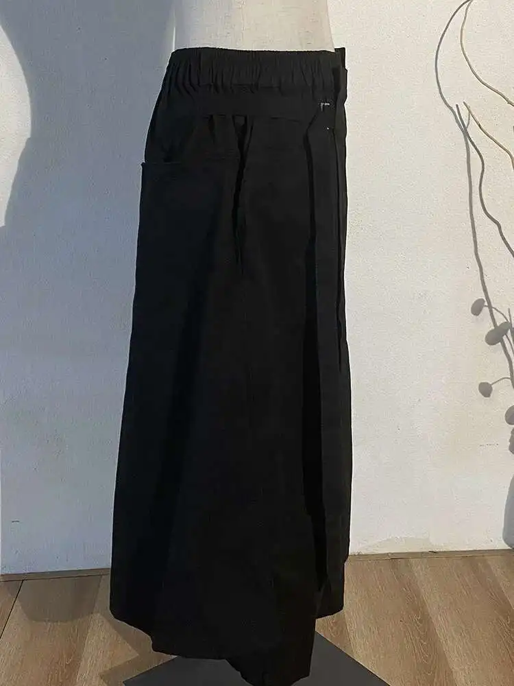 High Elastic Waist Black Irregular Bandage Wide Leg Pants New Loose Fit Trousers Women Fashion Spring Autumn 2025 JI0840