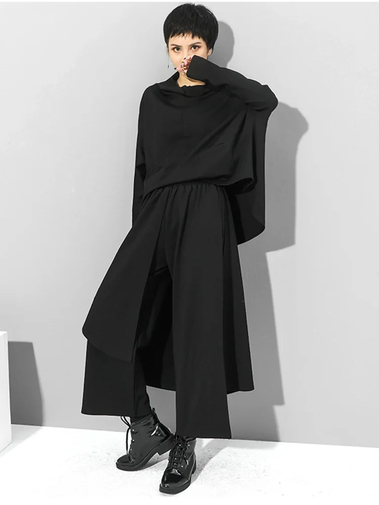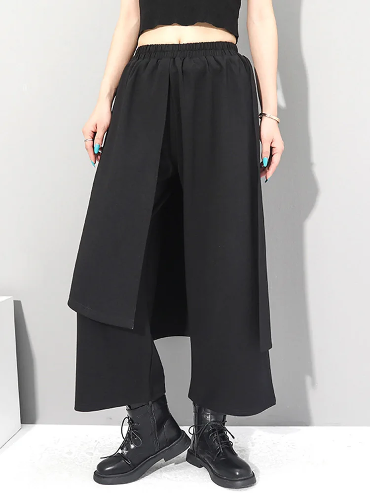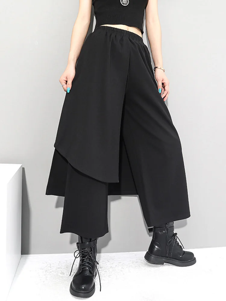 High Elastic Waist Black Irregular Long Wide Leg Trousers New Loose Fit Pants Women Fashion Tide Spring Autumn 2025 1Z289