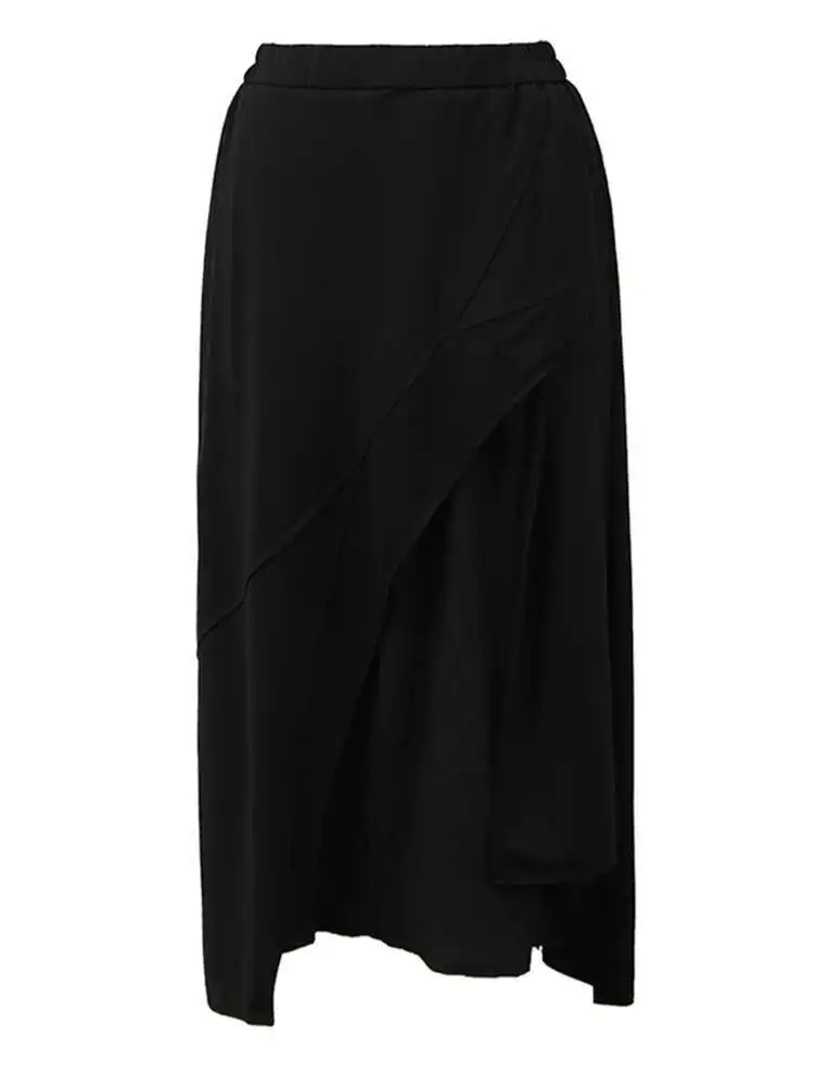High Elastic Waist Black Irregular Spliced Midi A-line Half-body Skirt Women Fashion Tide New Spring Autumn 2025 1DH5347