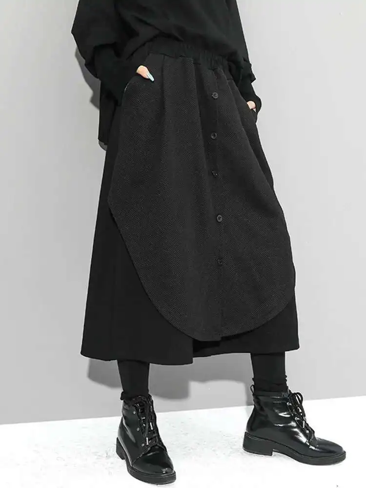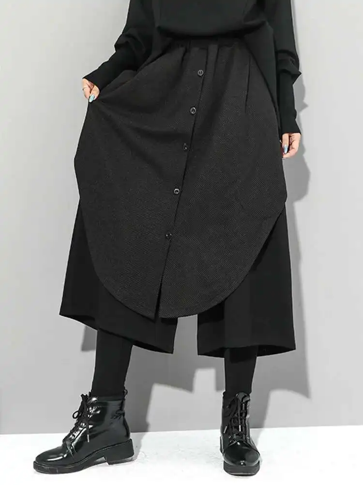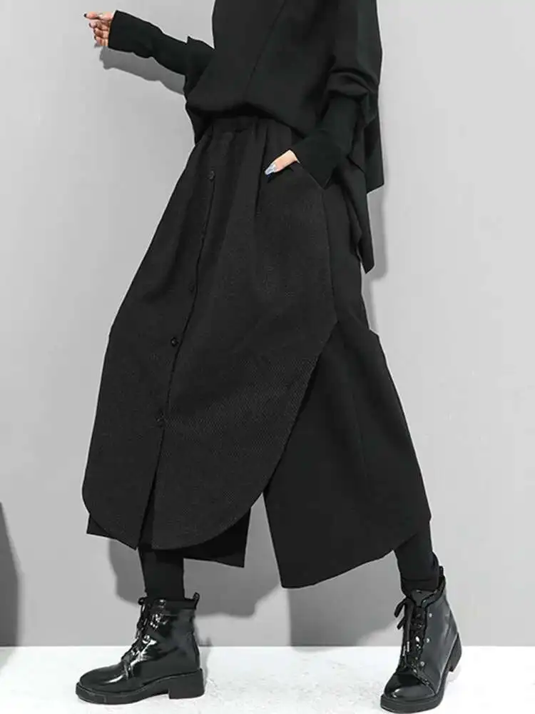 High Elastic Waist Black Irregular Wide Leg Pants New Loose Fit Trousers Women Fashion Tide Spring Autumn 2025 1DF4658