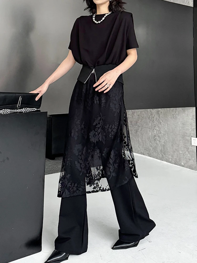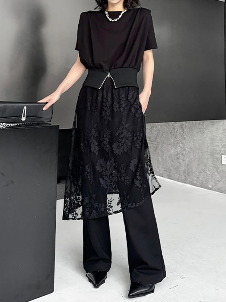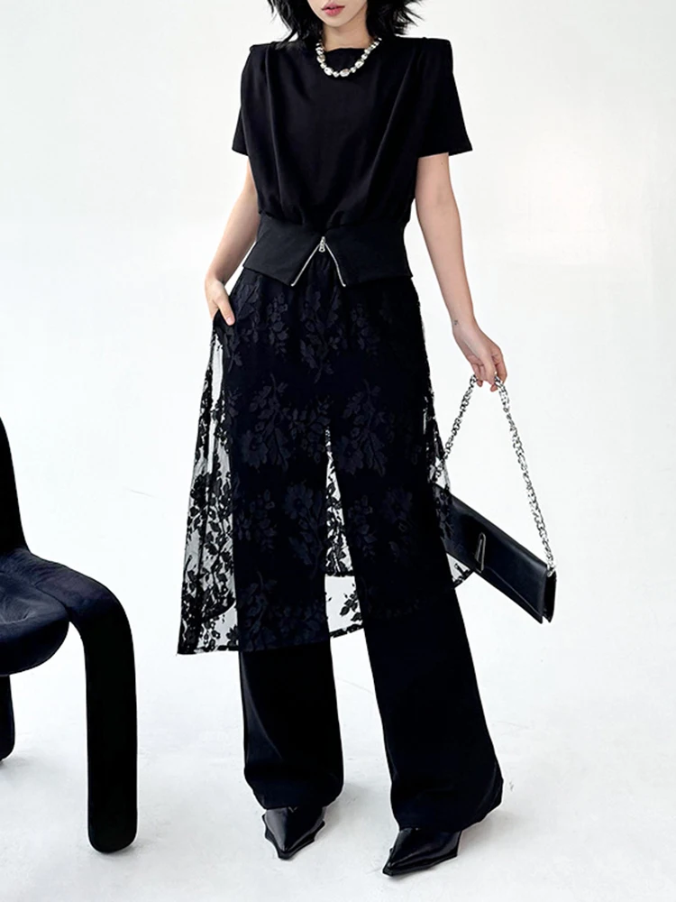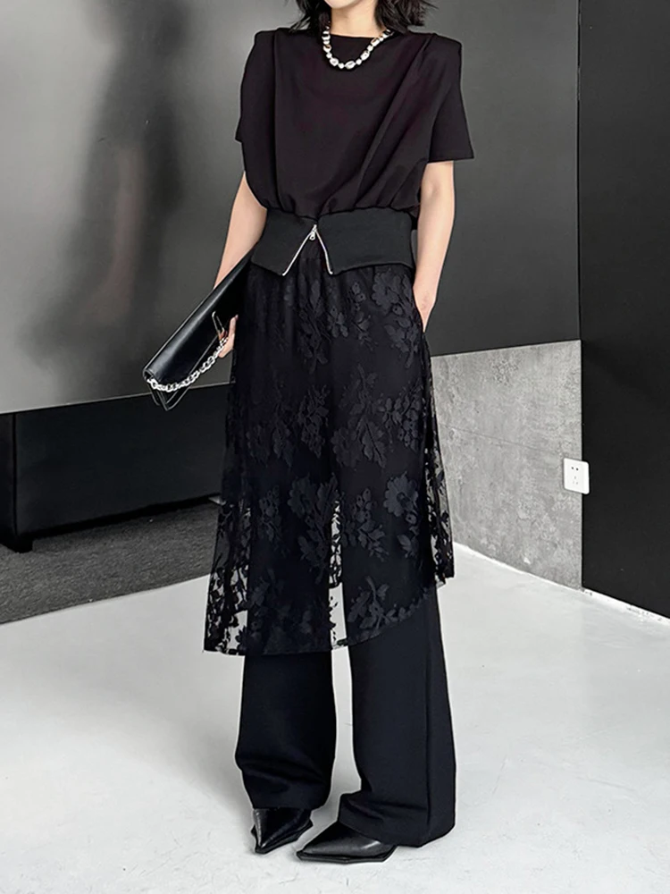 High Elastic Waist Black Lace Irregular Long Wide Leg Pants New Trousers Women Fashion Tide Spring Autumn 2025 1DJ1094