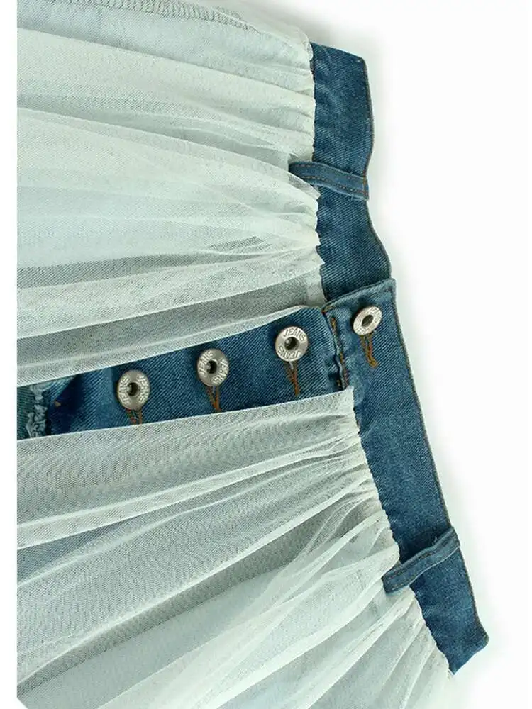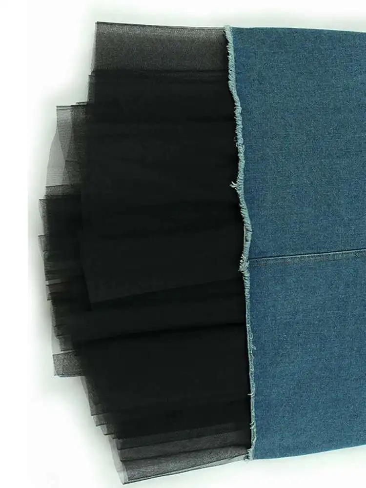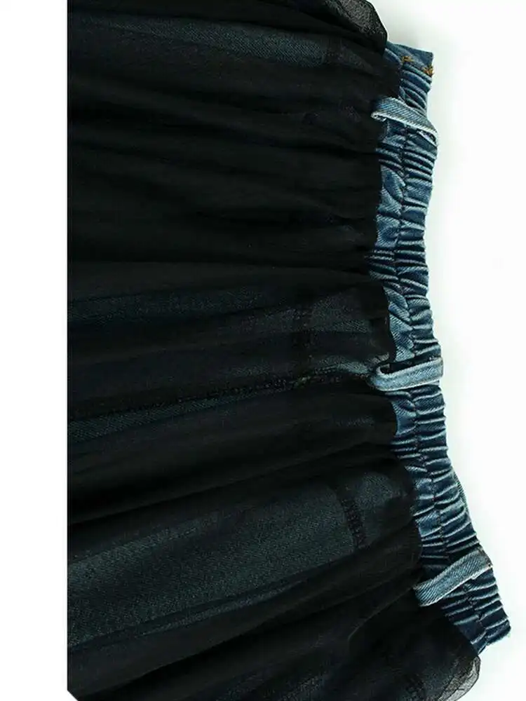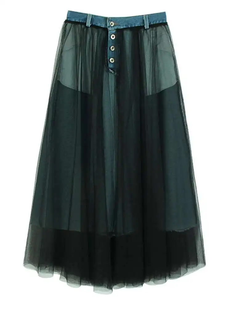 High Elastic Waist Black Mesh Denim Casual A-line Half-body Skirt Women Fashion Tide New Spring Autumn 2025 1DH6911