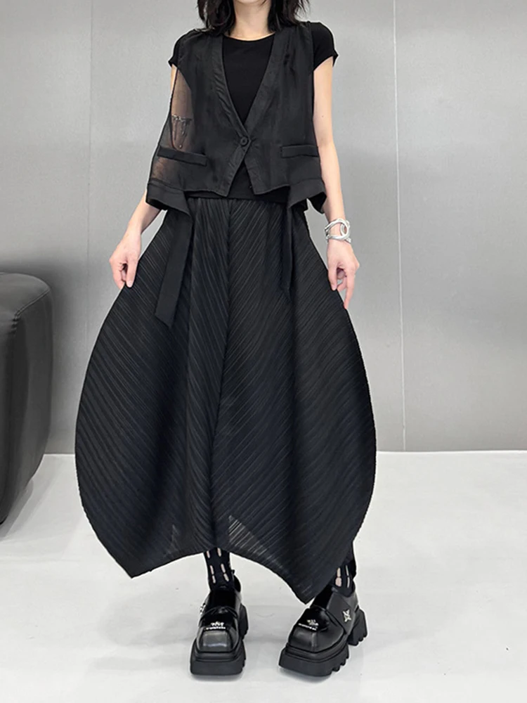 High Elastic Waist Black Pleated Irregular Shaped Bud Half-body Skirt Women Fashion Tide New Spring Autumn 2025 1DJ1411