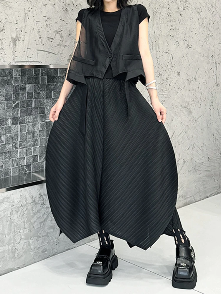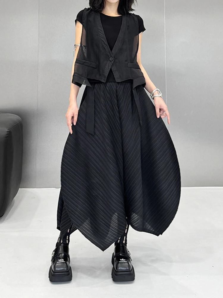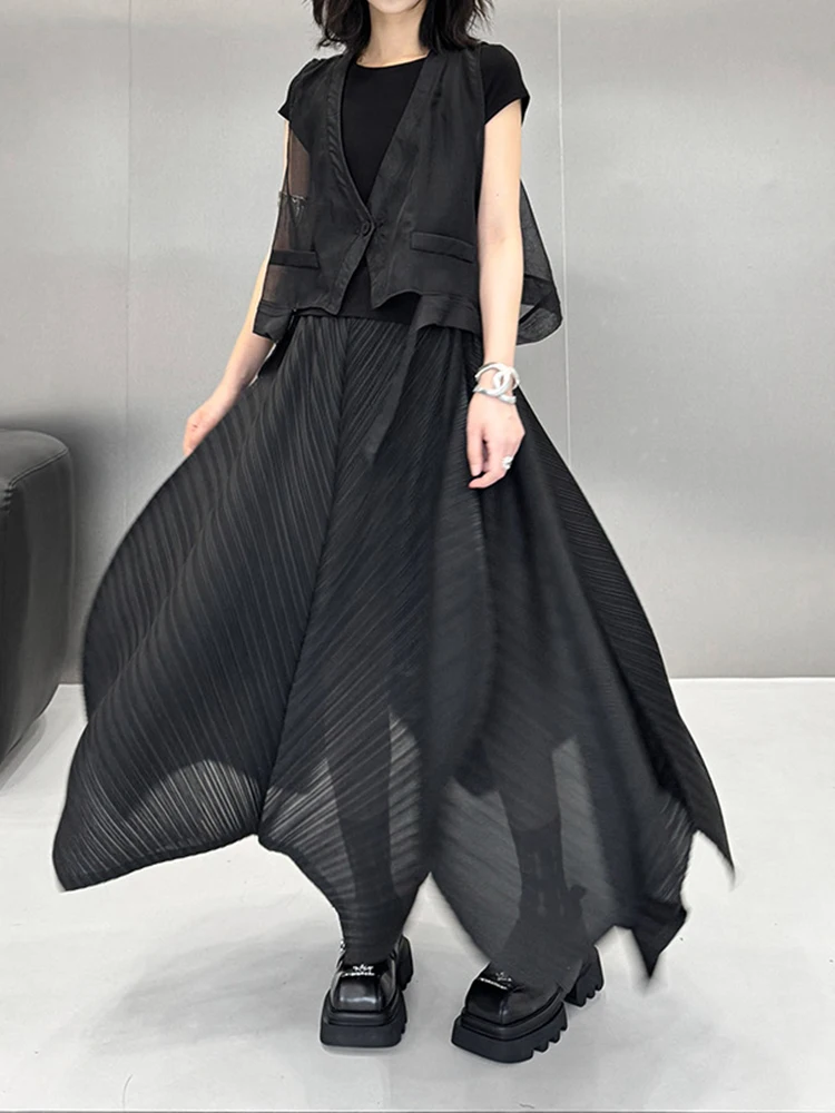 Load image into Gallery viewer, High Elastic Waist Black Pleated Irregular Shaped Bud Half-body Skirt Women Fashion Tide New Spring Autumn 2025 1DJ1411