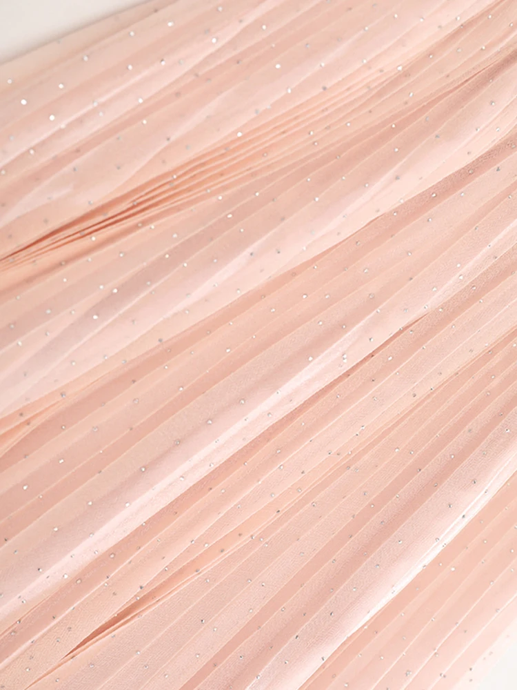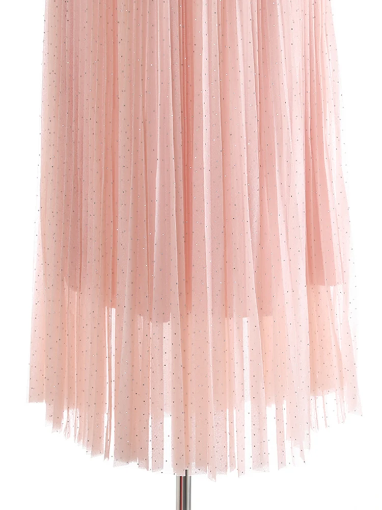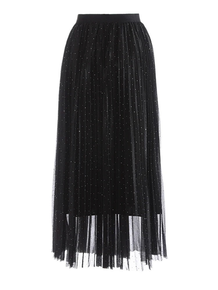 High Elastic Waist Black Pleated Rhinestones Shining Half-body Skirt Women Fashion Tide New Spring Autumn 2025 1DJ1271