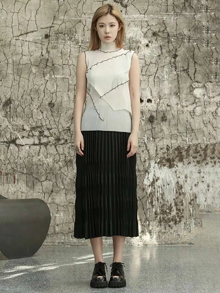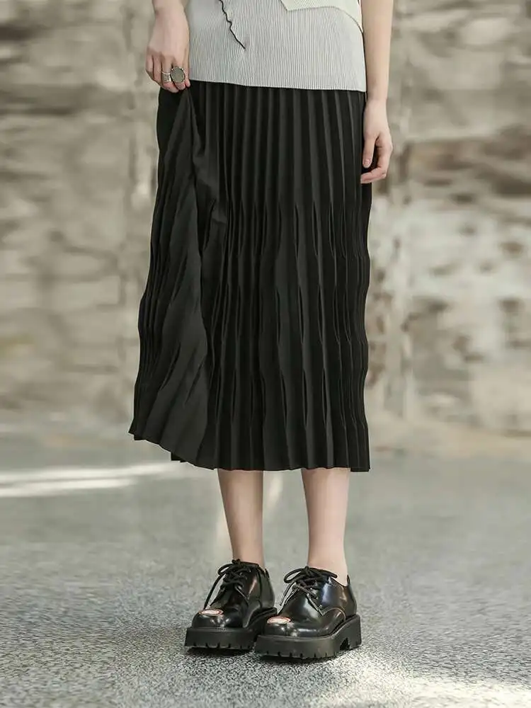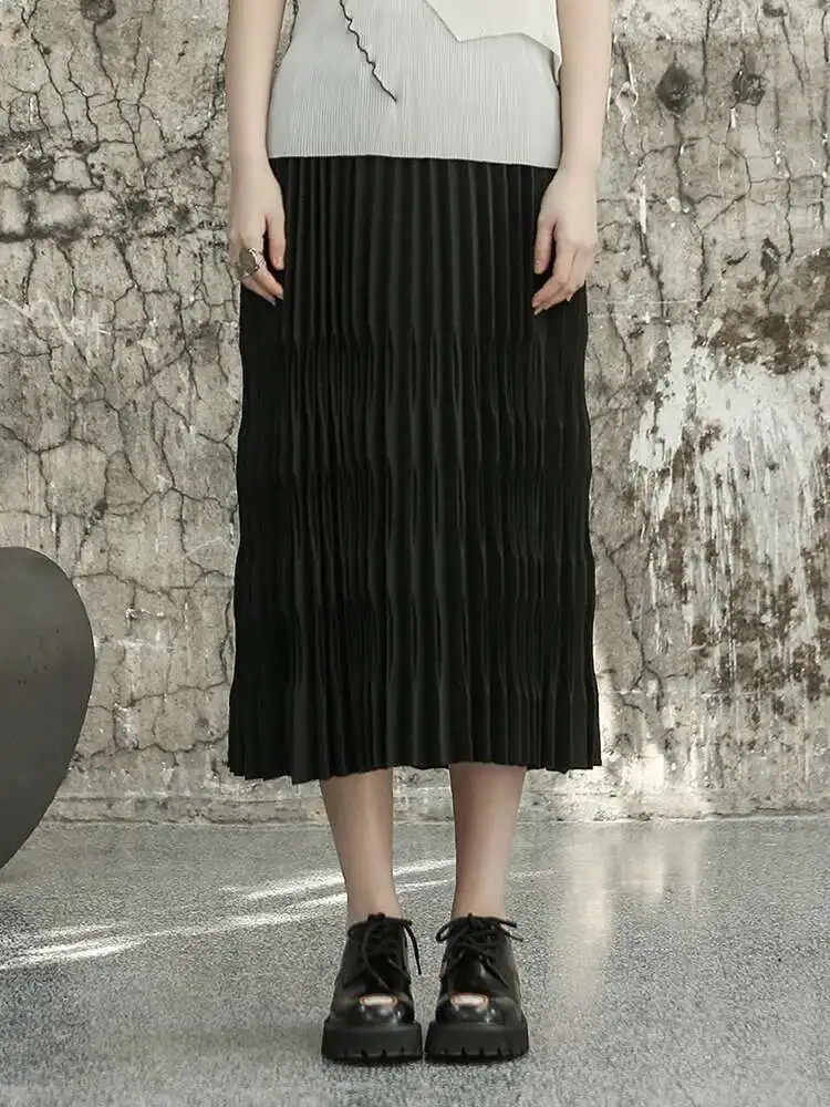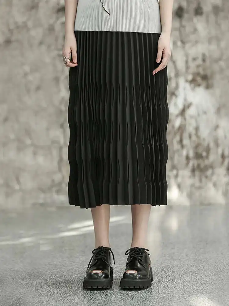 High Elastic Waist Black Pleated Shaped Elegant Midi Half-body Skirt Women Fashion Tide New Spring Autumn 2025 1DF6806