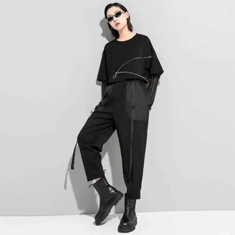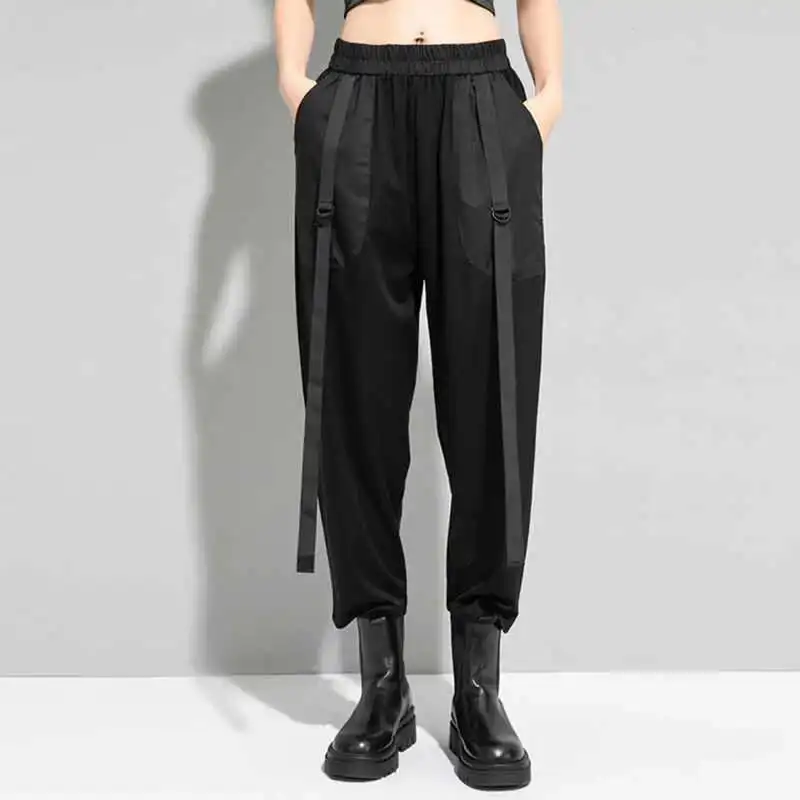 High Elastic Waist Black Pocket Split Long Harem Trousers New Loose Fit Pants Women Fashion Spring Autumn 2025 1DD5773