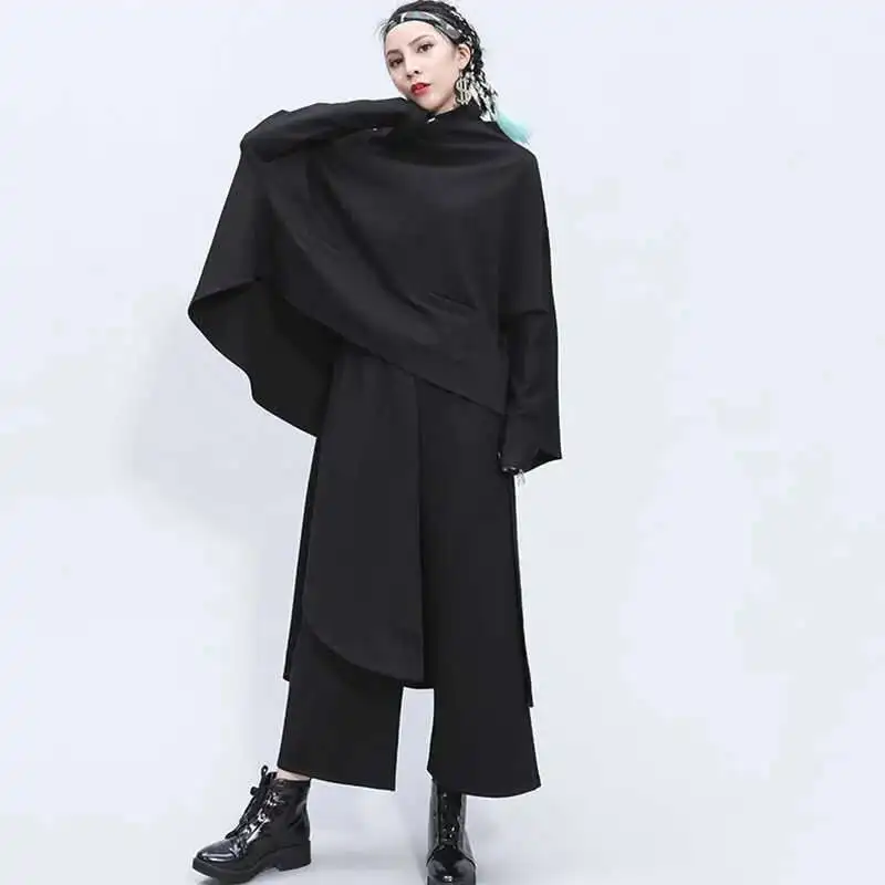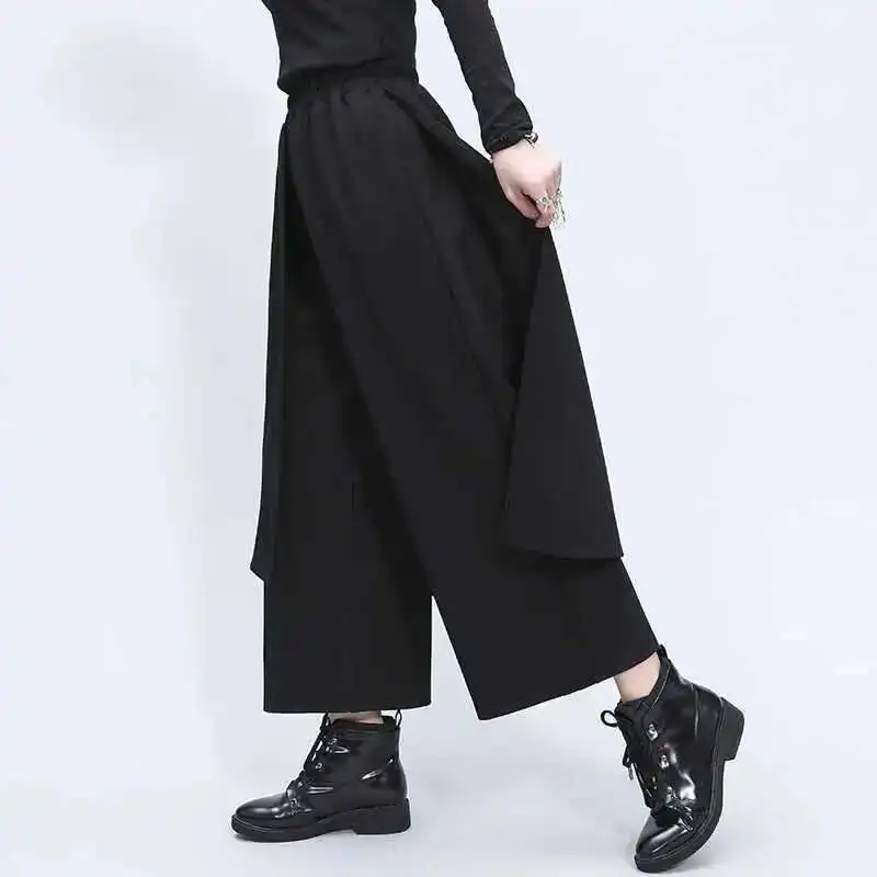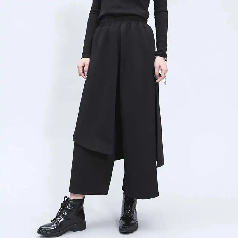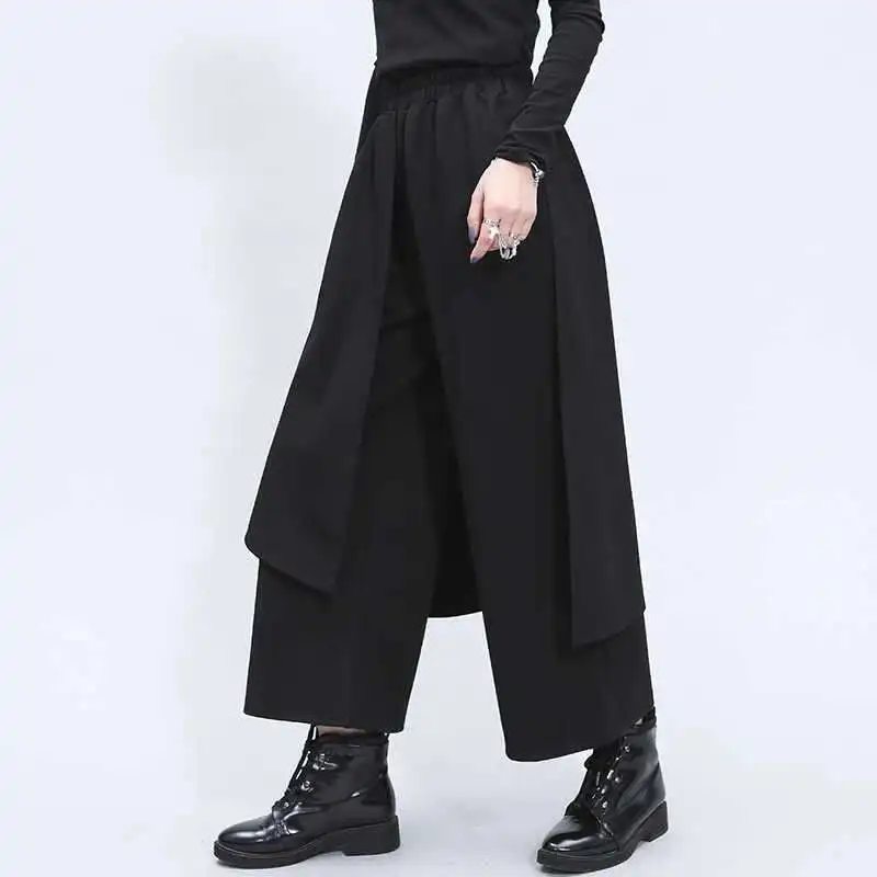 High Elastic Waist Black Split Joint Long Wide Leg Trousers New Loose Fit Pants Women Fashion Spring Autumn 2025 1Z325