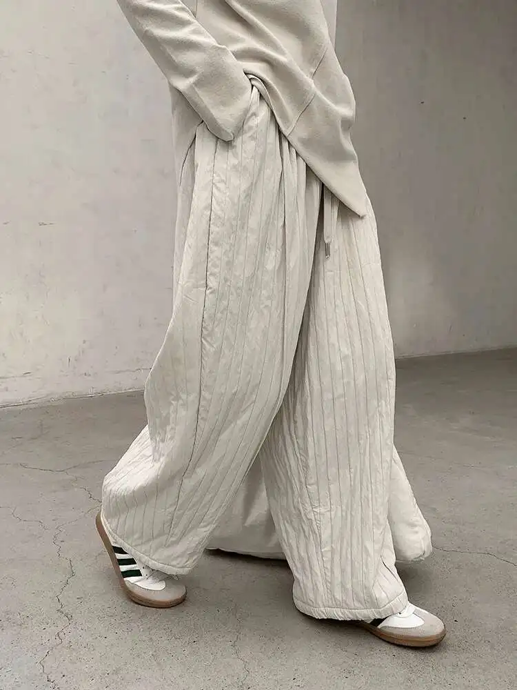High Elastic Waist Black Striped Casual Long Wide Leg Pants New Trousers Women Fashion Tide Autumn Winter 2025 1DH8380
