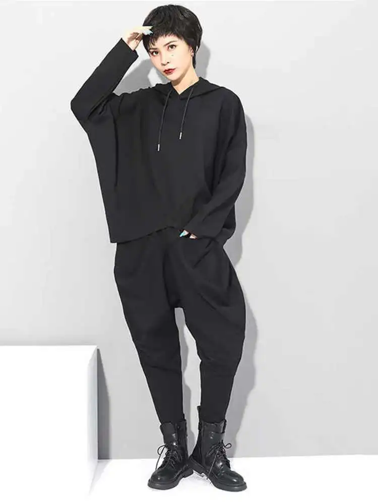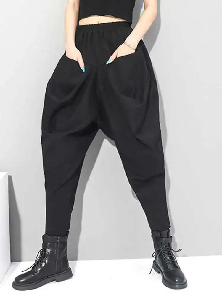 High Elastic Waist Black Wrinkled Long Harem Trousers New Loose Fit Pants Women Fashion Tide Spring Autumn 2025 1DC427