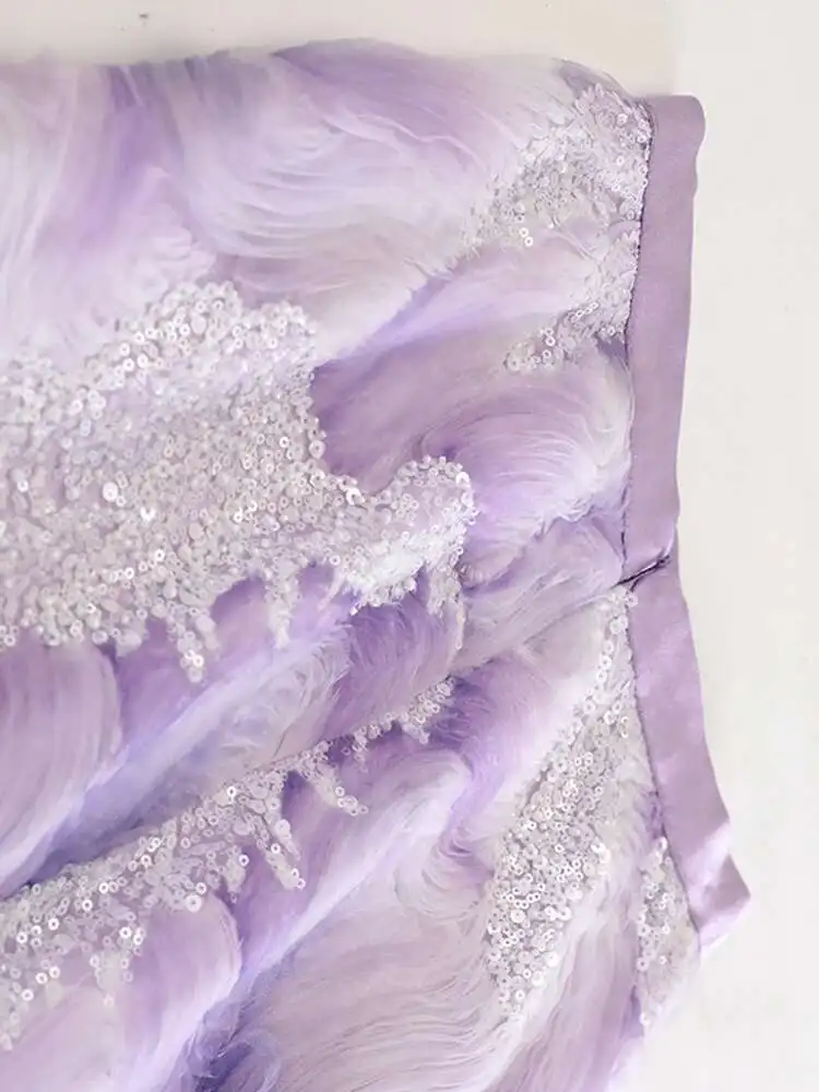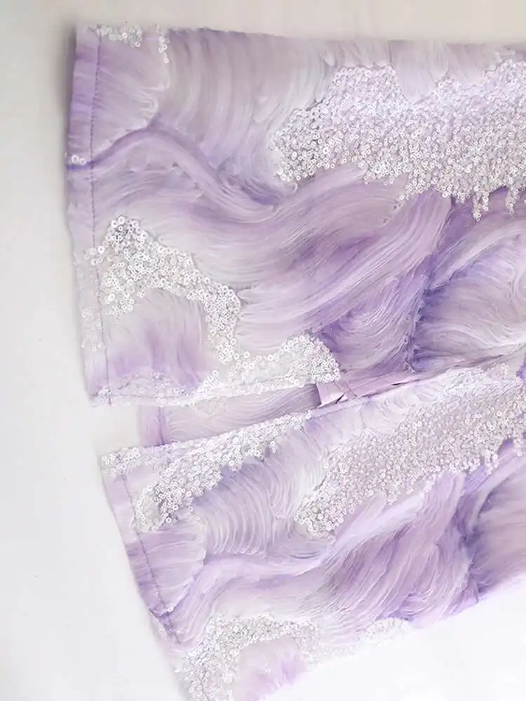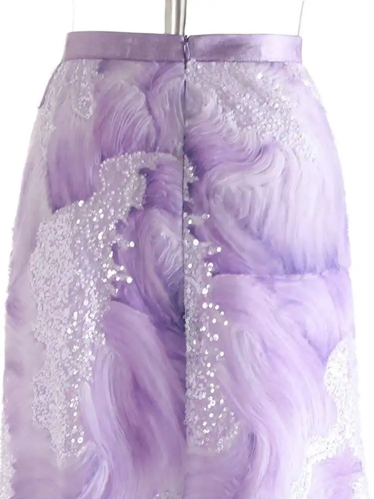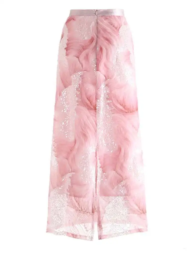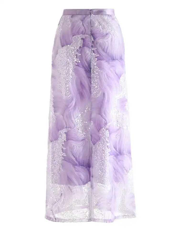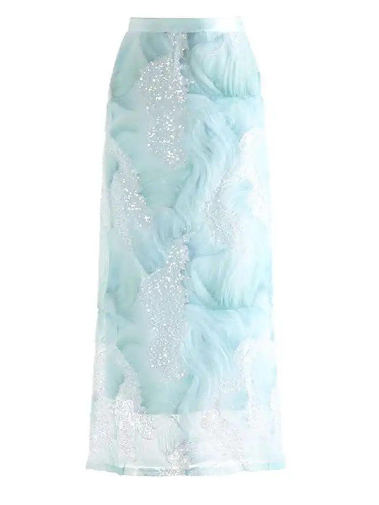 High Elastic Waist Blue Tie Dye Nailed Mesh Elegant Long Half-body Skirt Women Fashion Tide New Spring Autumn 20251DJ0705
