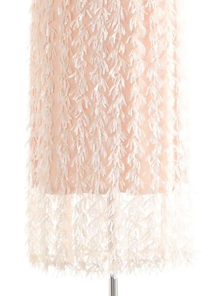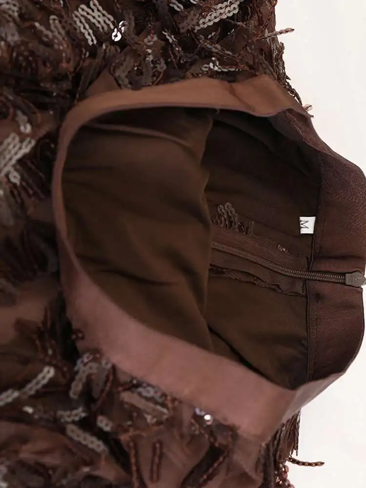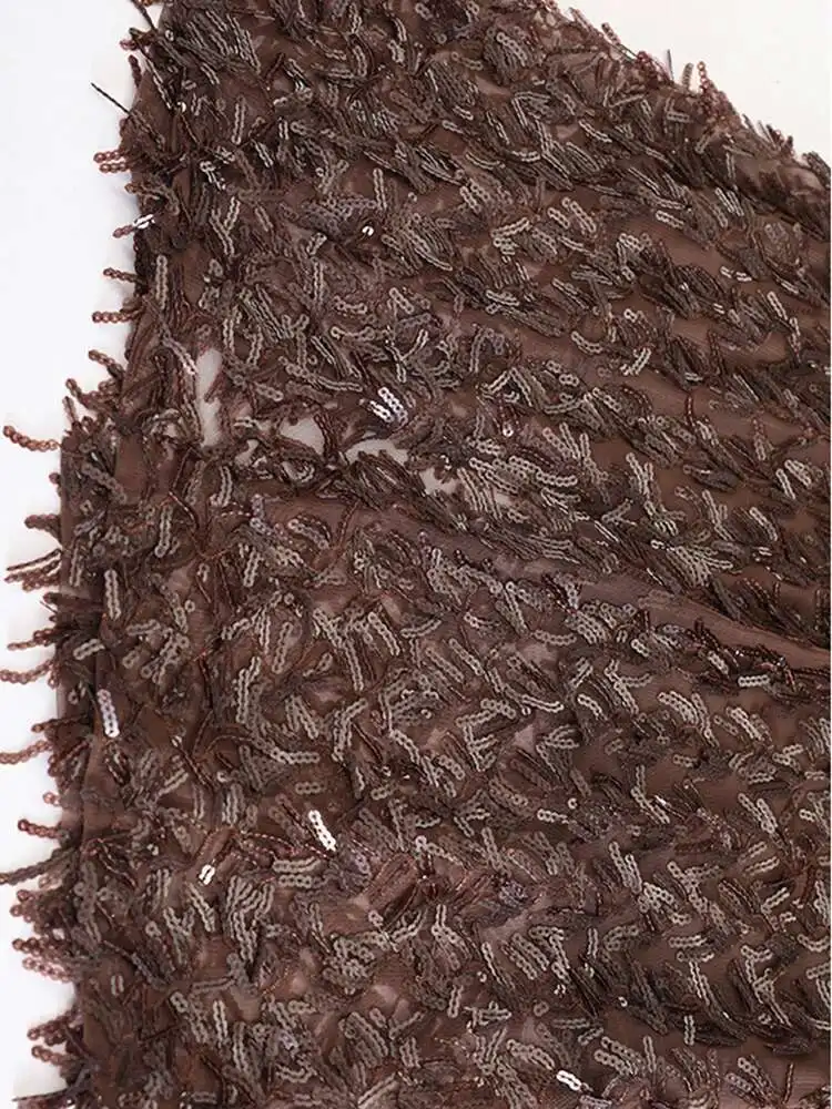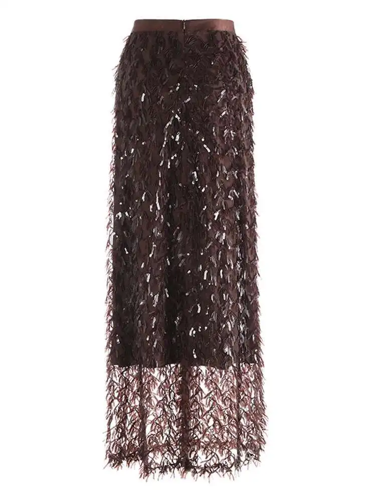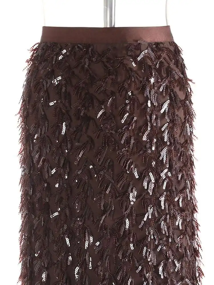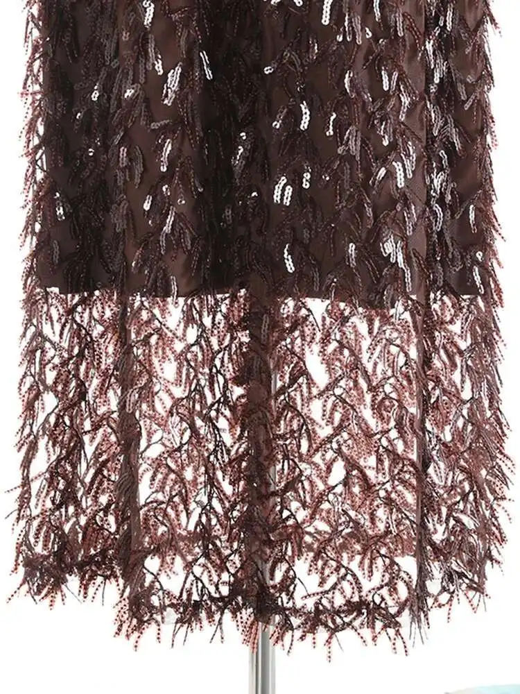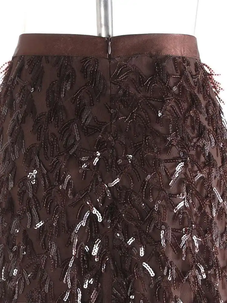 High Elastic Waist Brown Sequins Tassels Elegant Party Half-body Skirt Women Fashion Tide New Spring Autumn 2025 1DH9912