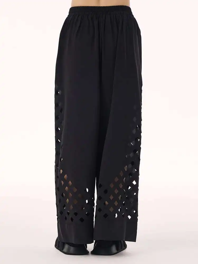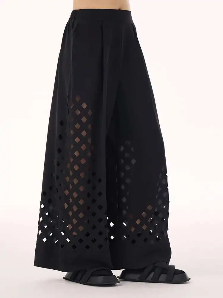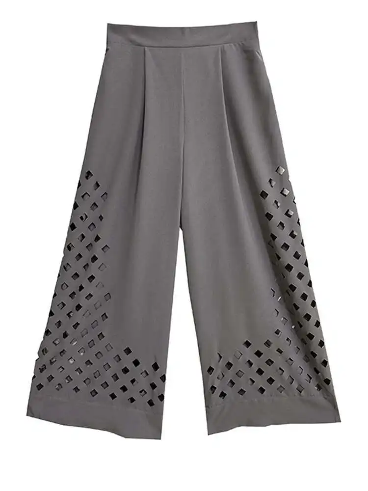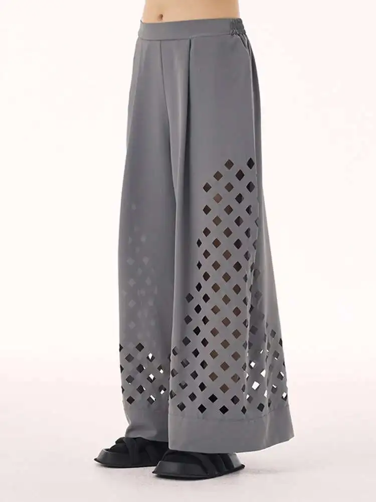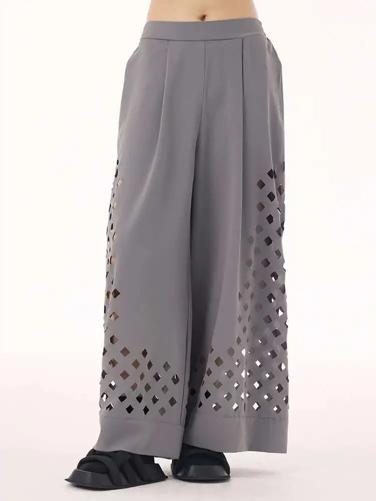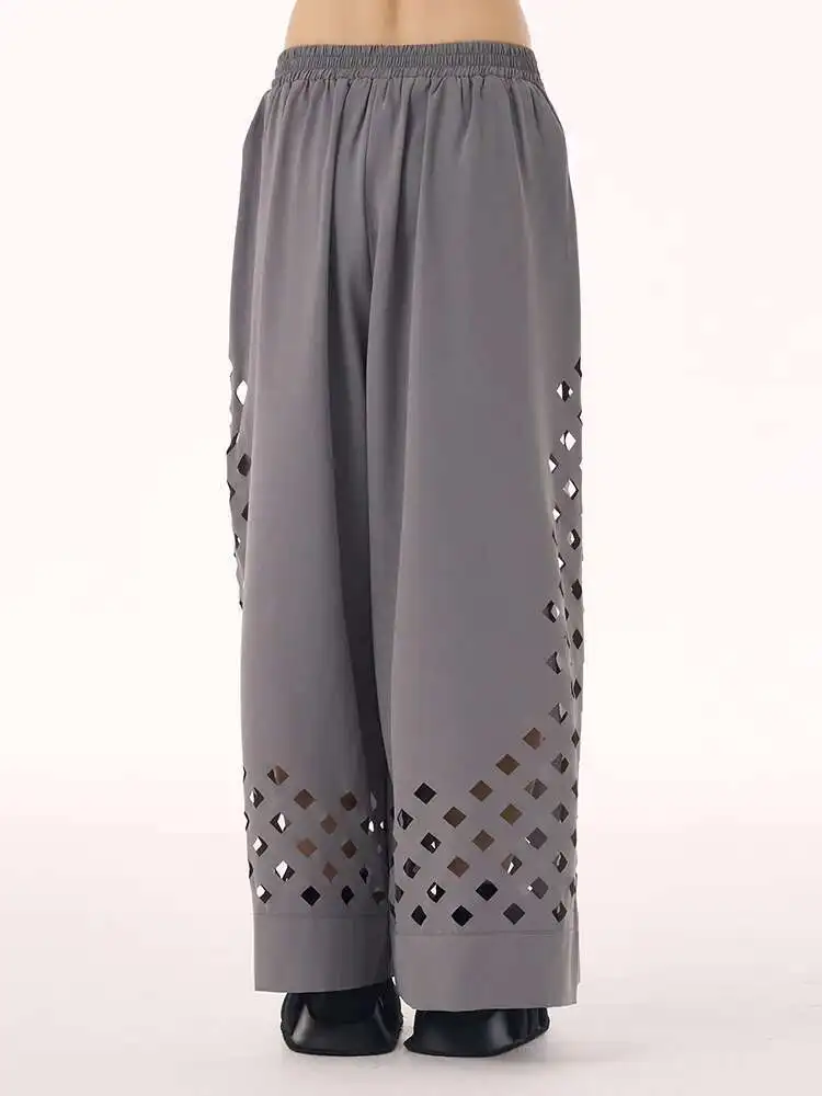 High Elastic Waist Gray Hollow Out Long Wide Leg Casual Pants New Trousers Women Fashion Tide Spring Autumn 2025 1DH9432