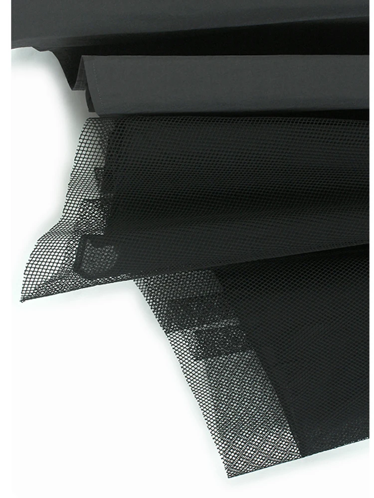 High Elastic Waist Gray Irregular Mesh Spliced A-line Half-body Skirt Women Fashion Tide New Spring Autumn 2025 1DJ1418