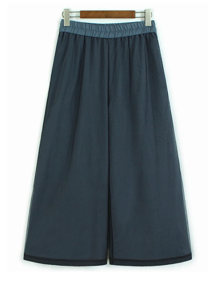 High Elastic Waist Gray Mesh Spliced Casual Wide Leg Pants New Trousers Women Fashion Tide Spring Autumn 20251DJ1438