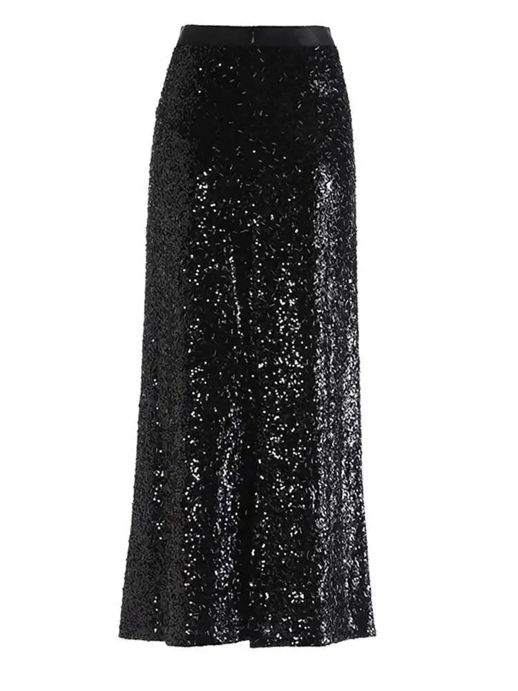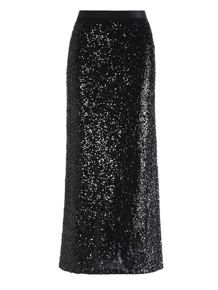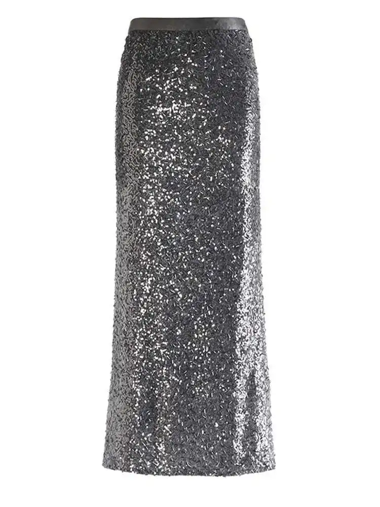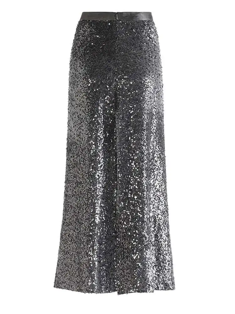 High Elastic Waist Gray Sequins Shining Elegant Long Half-body Skirt Women Fashion Tide New Spring Autumn 2025 1DH7488