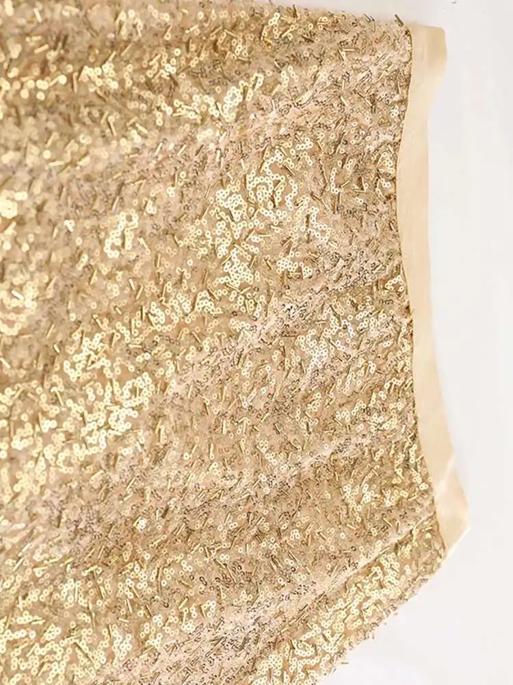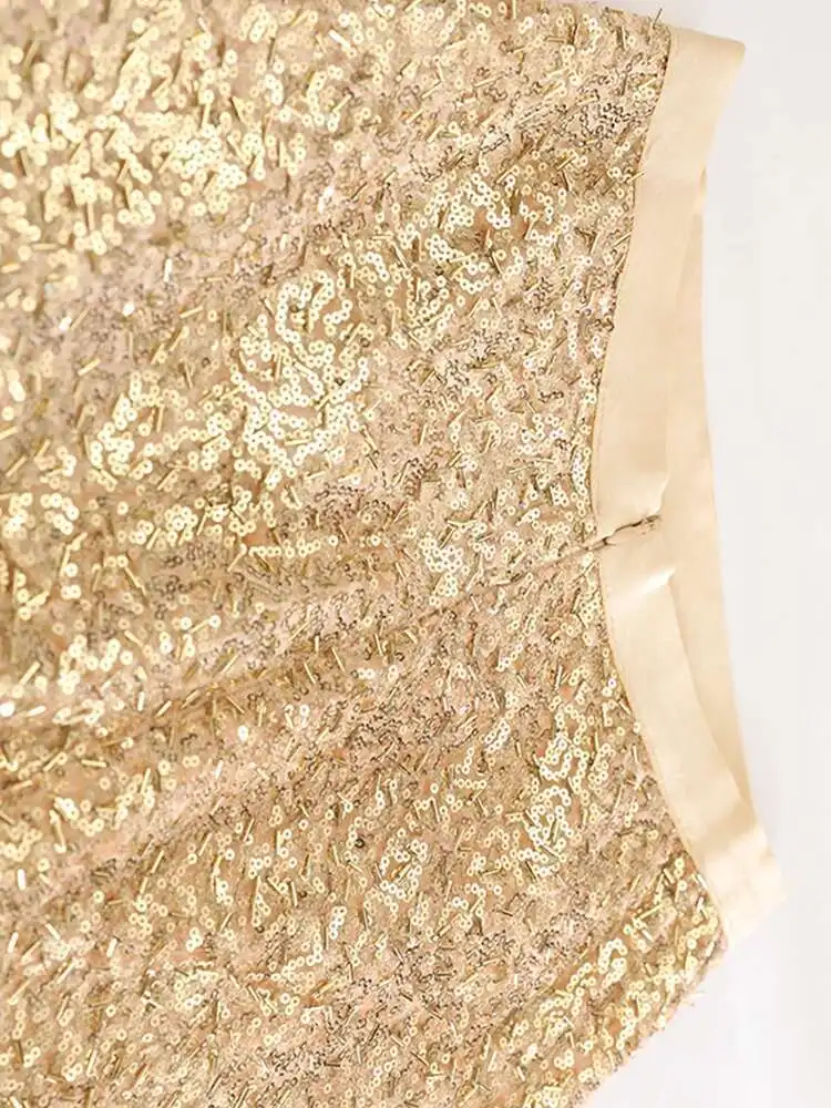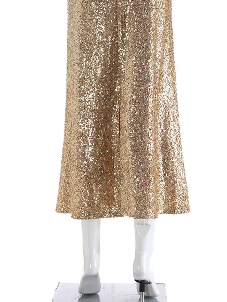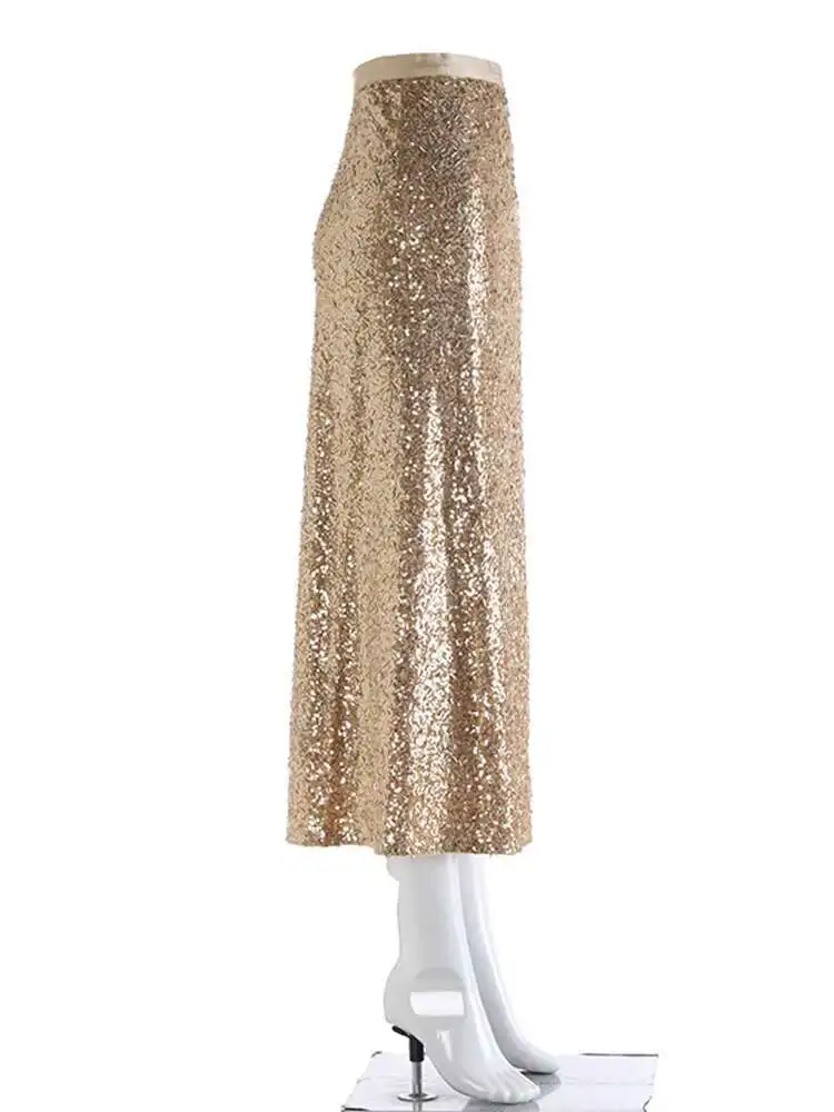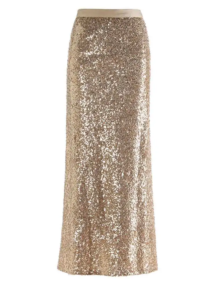 High Elastic Waist Gray Sequins Shining Elegant Long Half-body Skirt Women Fashion Tide New Spring Autumn 2025 1DH7488