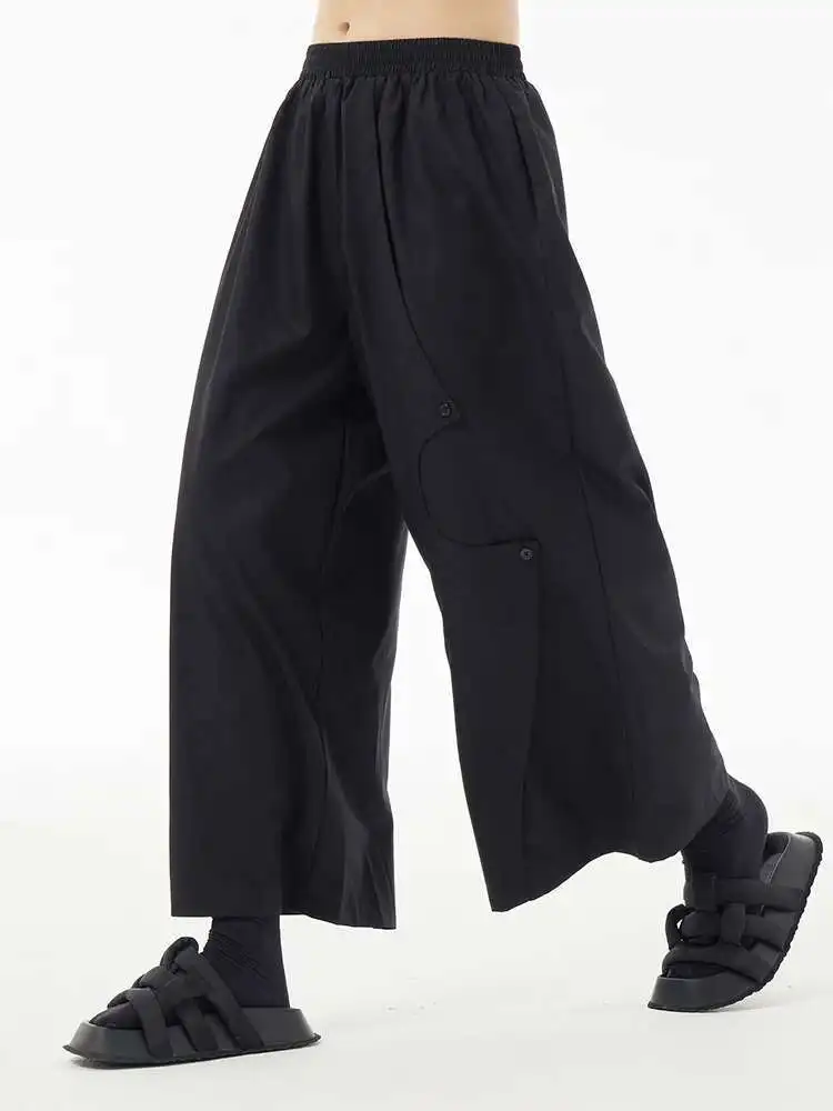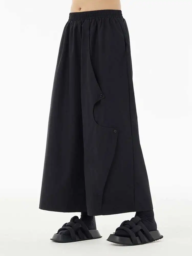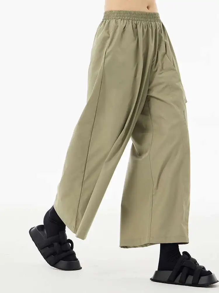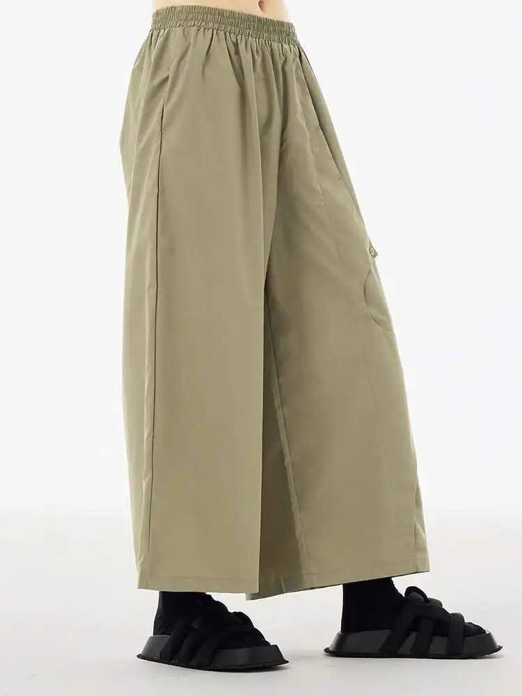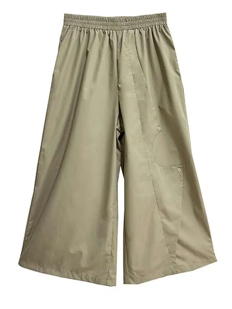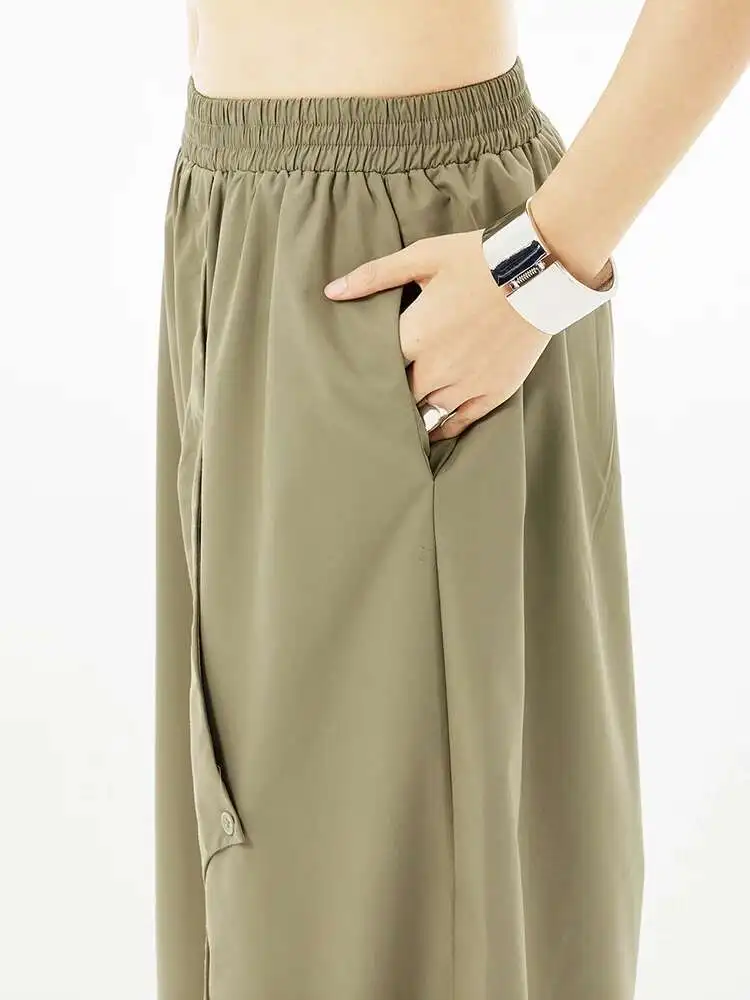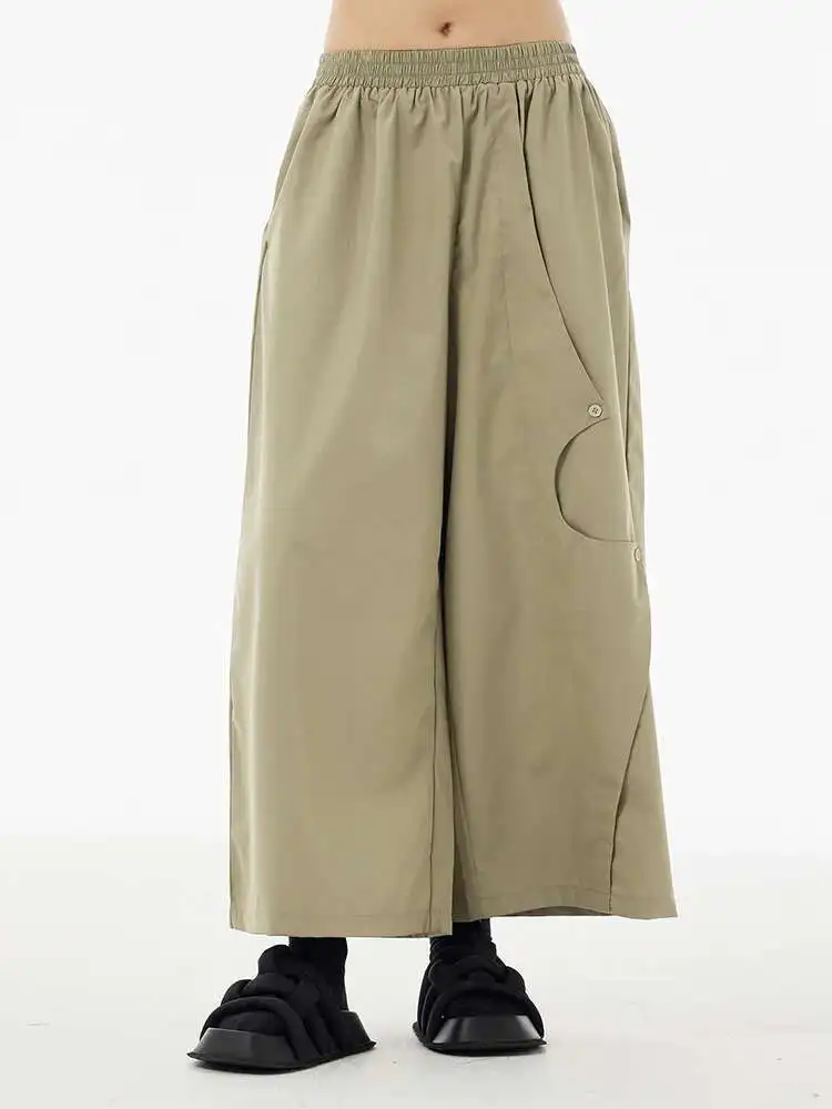 High Elastic Waist Khaki Irregular Button Wide Leg Pants New Trousers Women Fashion Tide Spring Autumn 2025 1DH5684